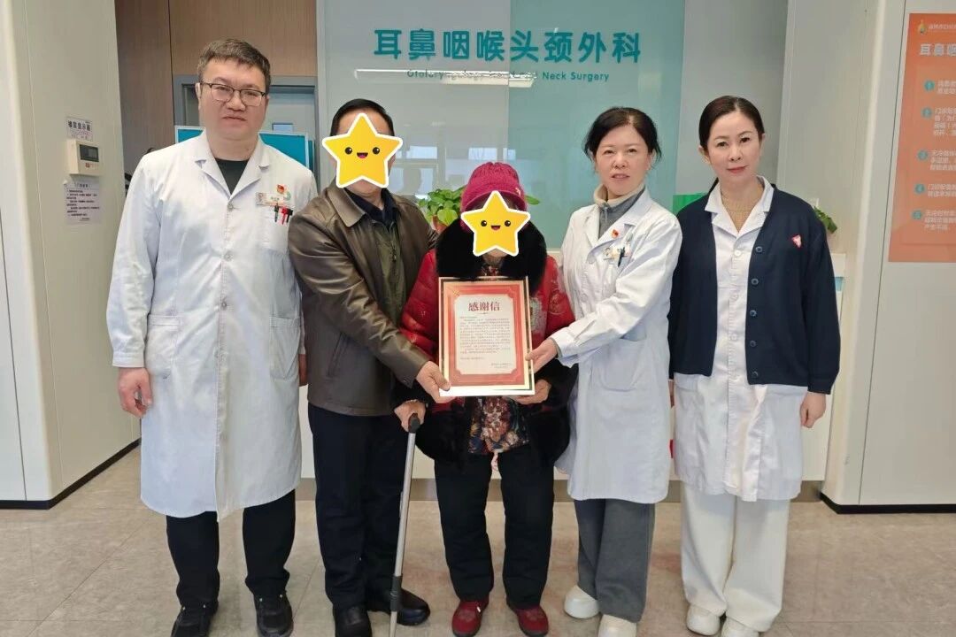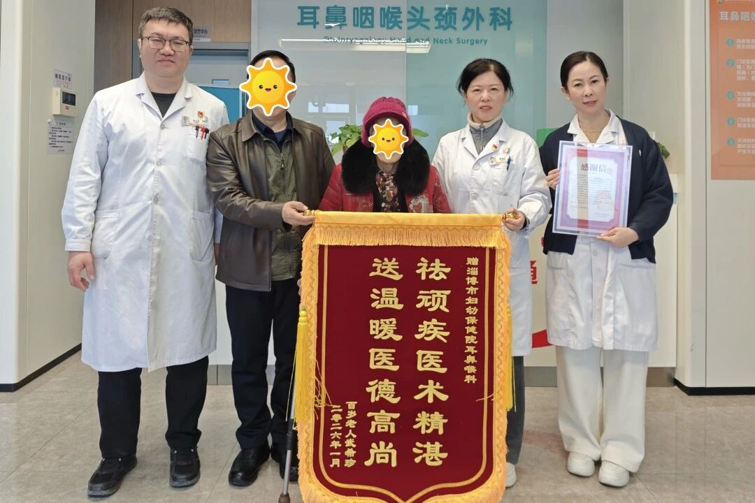 “多亏了淄博市妇幼保健院的医护团队,不仅上门换药解了我们的燃眉之急,还成功为老母亲切除了困扰多年的肿物,现在老人恢复得特别好!”近日,年过百岁老人的家属带着一面写有“祛顽疾医术精湛 送温暖医德高尚”的锦旗和一封情真意切的感谢信,来到淄博市妇幼保健院(淄博市第三人民医院)耳鼻咽喉头颈外科,向全体医护人员表达诚挚谢意。