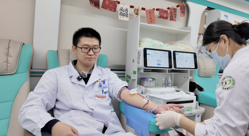 1月29日上午11点,山东中医药大学附属医院(山东省中医院),几辆献血车静静停靠在大门外的空地。献血车内,放射科主管技师李秉营刚刚结束献血,手指还轻轻按压在抽完血的左臂,这是他职业生涯中的第十五次献血。“献血车都开到单位门口了,当然要来献一次。”他笑着说。