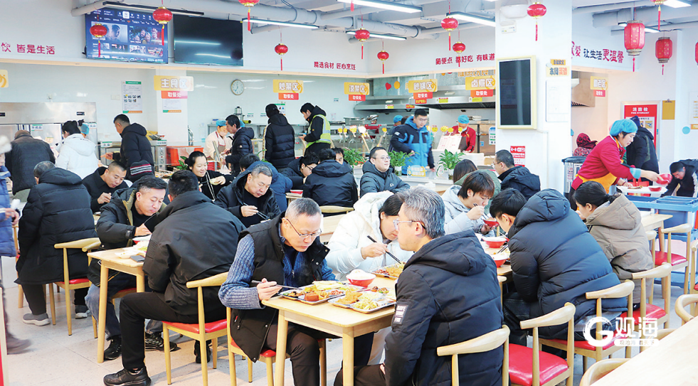 除小区居民外,幸福小镇也有赛轮集团、寰宇东方、潍柴智慧重工等大量企业职工入住。上午11时,助老区打餐窗口仍有老人陆续前来,而社会就餐区也开始忙碌起来,“来一份羊肉汤,一个烧饼。”“我要份土豆丝、油炸丸子,加一份米饭。”……食堂内年轻人越来越多,很快便座无虚席。