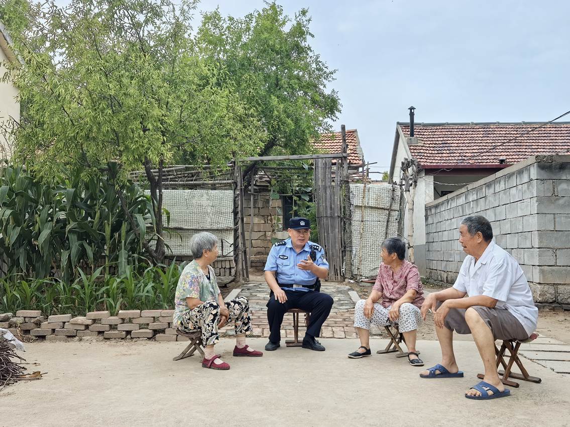 盛夏7月,东营市公安局东营分局史口派出所社区民警走访辖区独居老人,开展安全防范宣防。姜宁 摄。