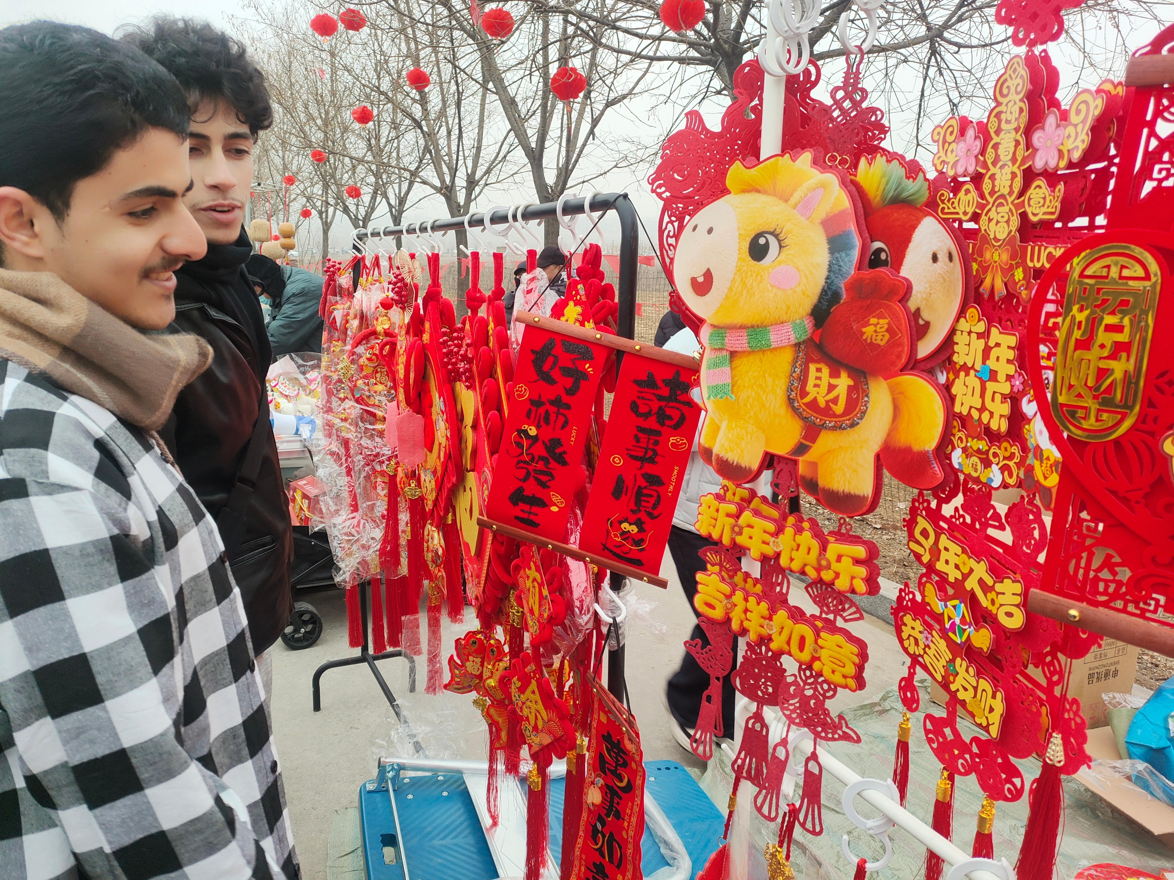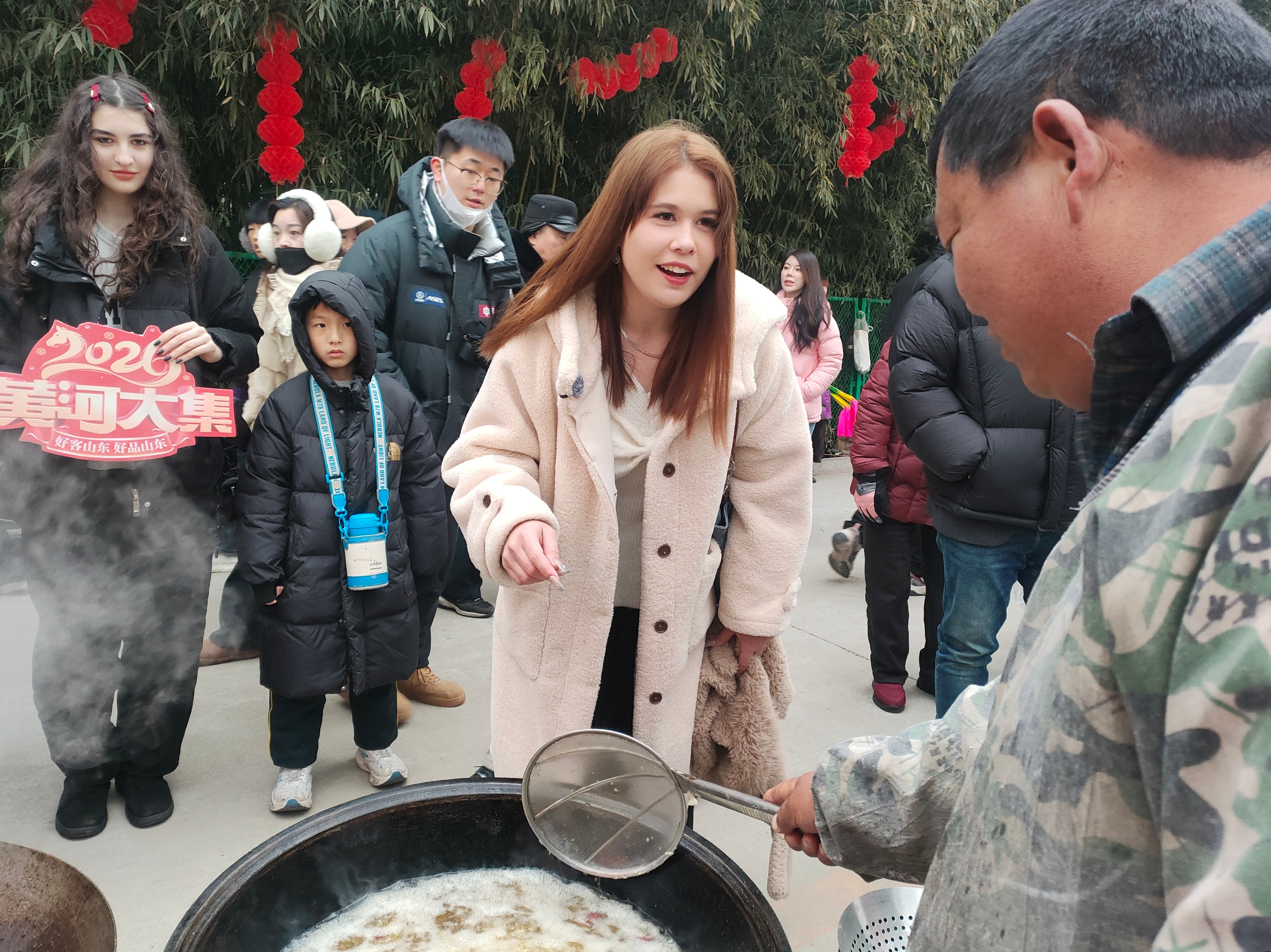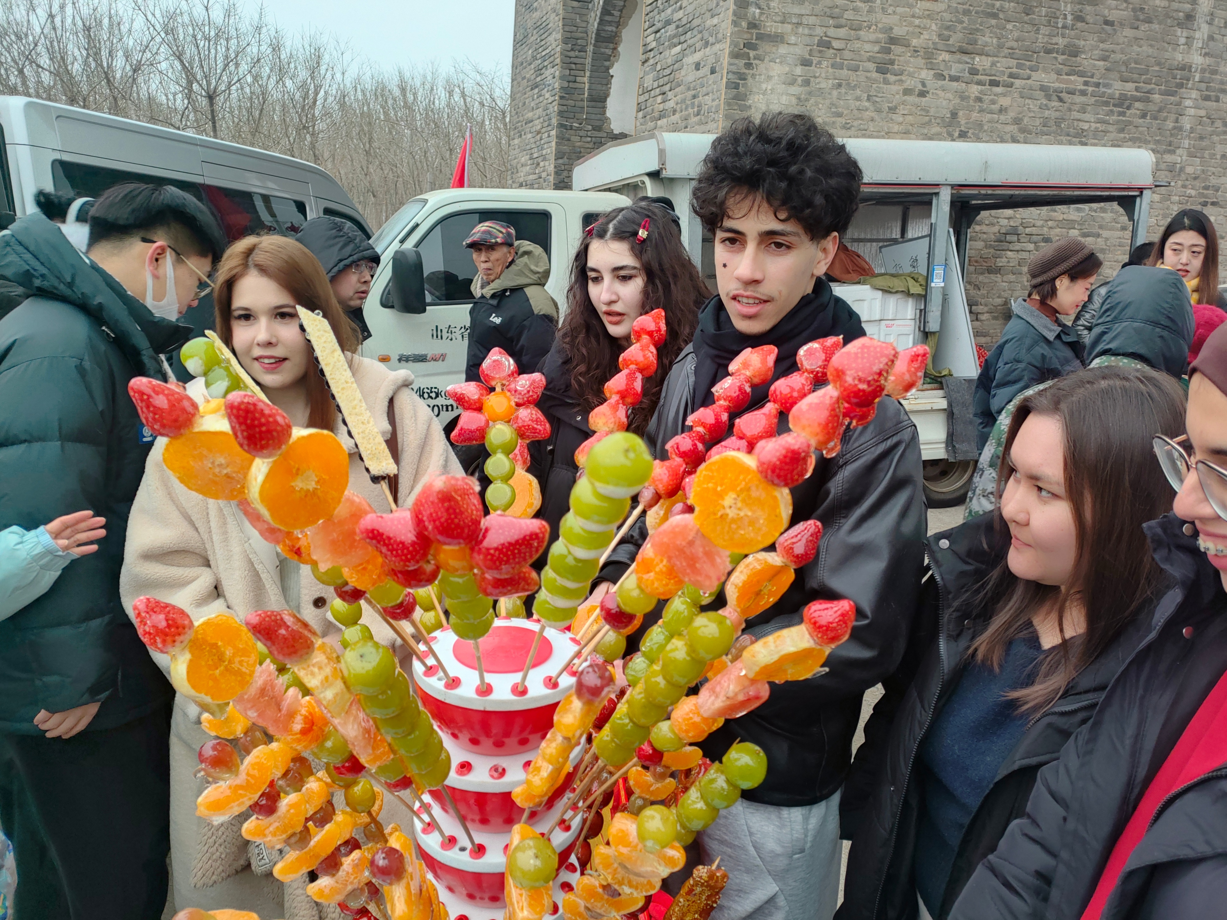 1月31日,淄博一高校的留学生们,走进淄博市周村区南郊镇韩家窝大集,沉浸式体验中国年集文化。热闹的市集里,留学生们穿梭于摊位间,感受着浓浓年味与市井烟火,在赶集的过程中近距离触摸中国传统年俗,让中外文化在新春的热闹氛围中交融碰撞,为淄博的年味增添了别样的国际色彩。