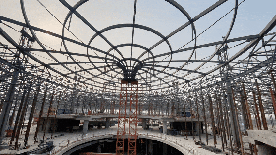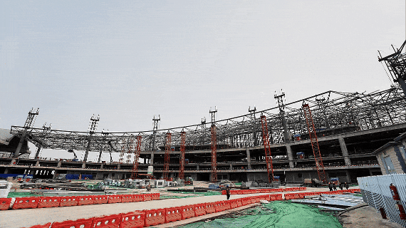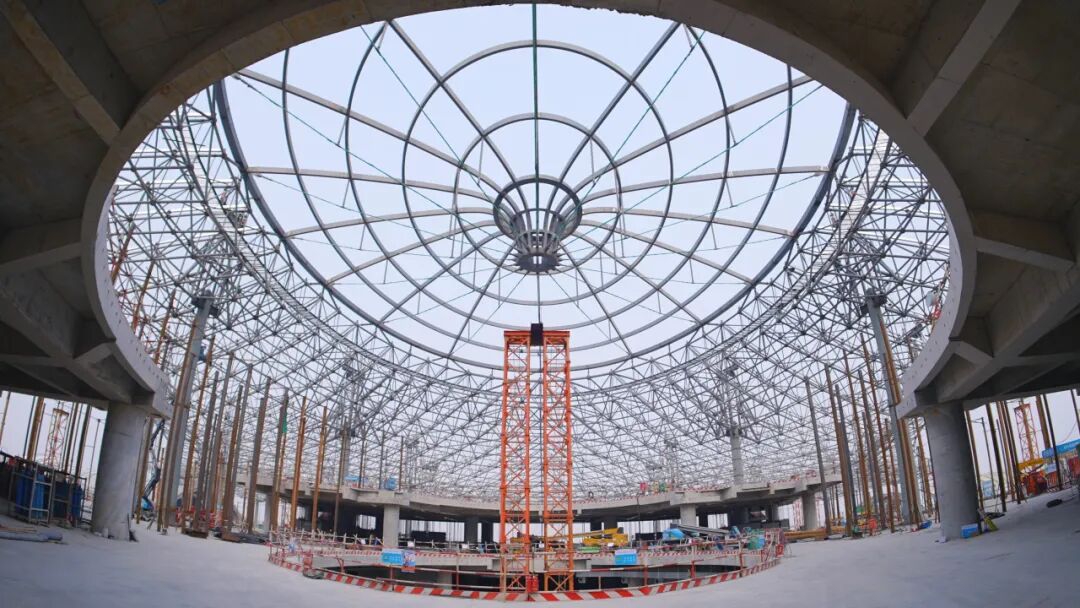 1月30日,济南机场二期改扩建工程又迎一关键节点,T2航站楼钢网架屋盖整体提升全部完成,标志着T2航站楼主体结构施工取得重要突破,为后续建设打下坚实基础。