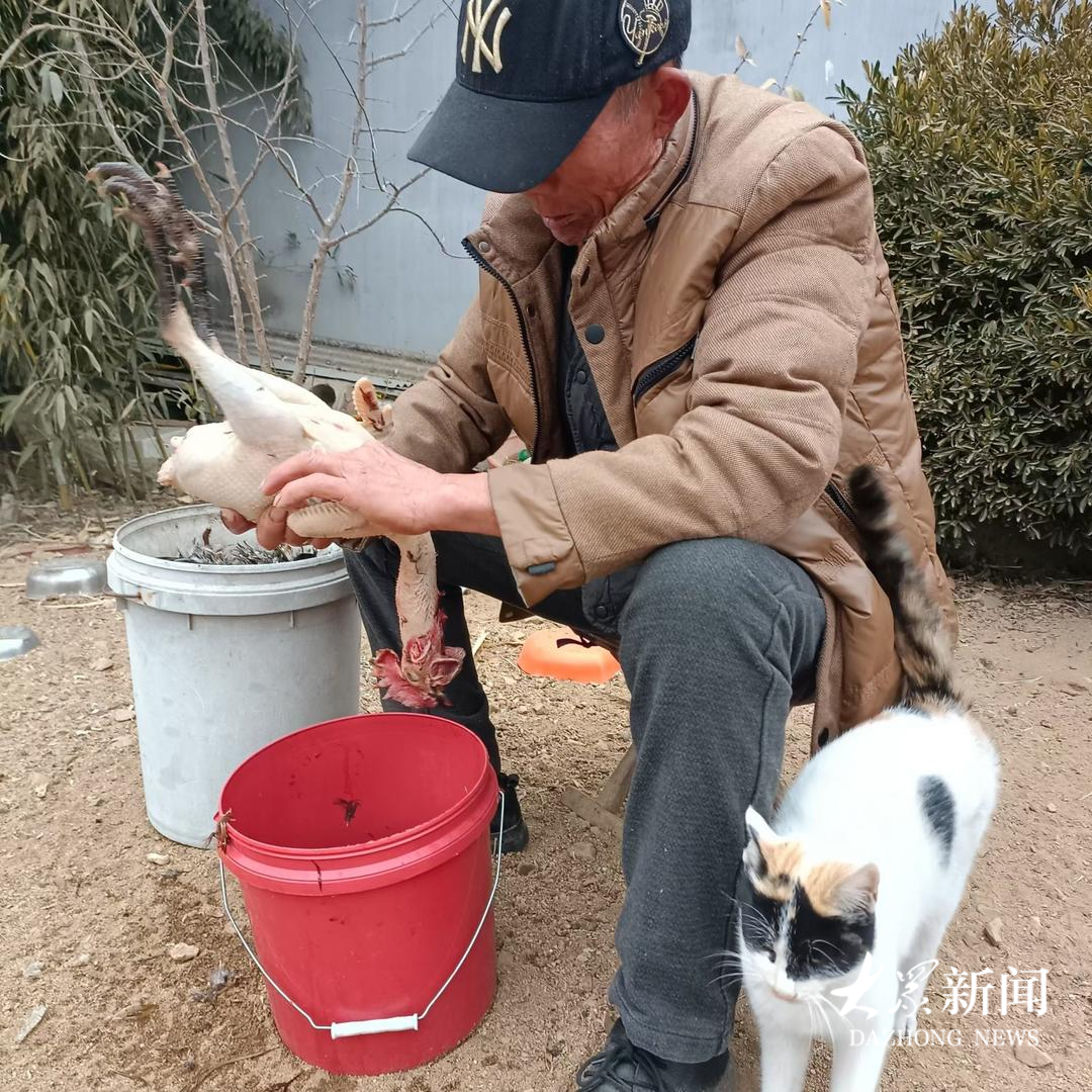 去毛、开膛、分块,肉被放进始终敞着的大铁锅里煮。稍微有点东风,全村肉香。
