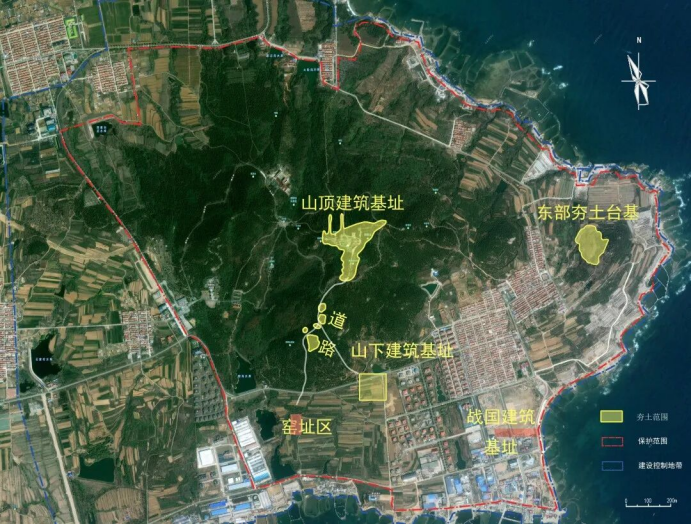 山下则发现了一处秦代建筑基址。这些建筑基址与山顶建筑基址相连,组成一个整体建筑群落。通过发掘,考古学家确认这里曾是一个阶梯式院落,背山面海,设计独特。与山顶建筑一起,共同构成一个宏大的工程系统,彰显了当时帝国对海疆的统治意图。