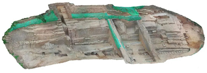 山顶建筑基址西侧发掘区三维模型(西北—东南)