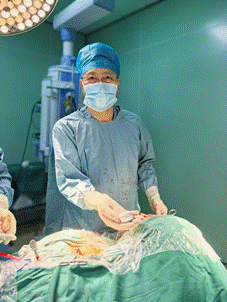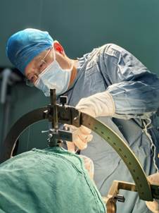 谭守刚为患者植入可充电可感知闭环8触点刺激电极
