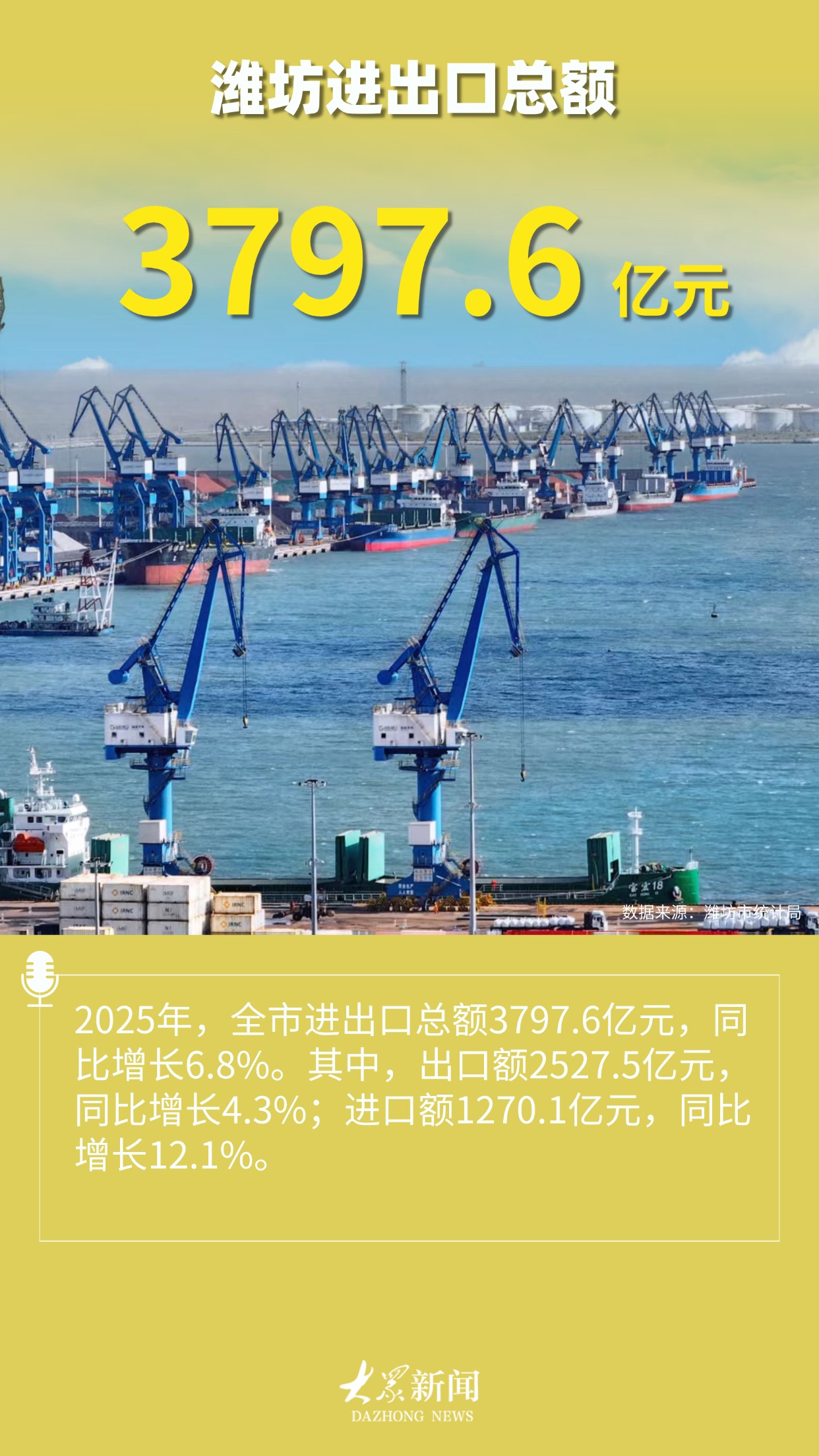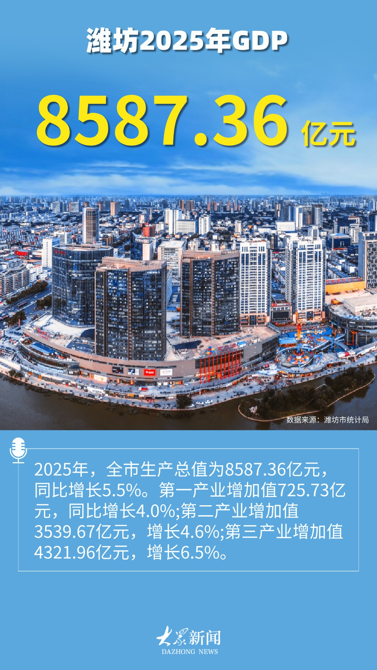 “更好潍坊”迈上8500亿台阶都镇强 来源:大众新闻·大众日报2026-02-04 18:04:21原创(大众新闻记者 都镇强)责任编辑:王佳声大众新闻原创内容,未经授权不得转载转载事宜请联系大众新媒体大平台 联系电话:0531-85193469