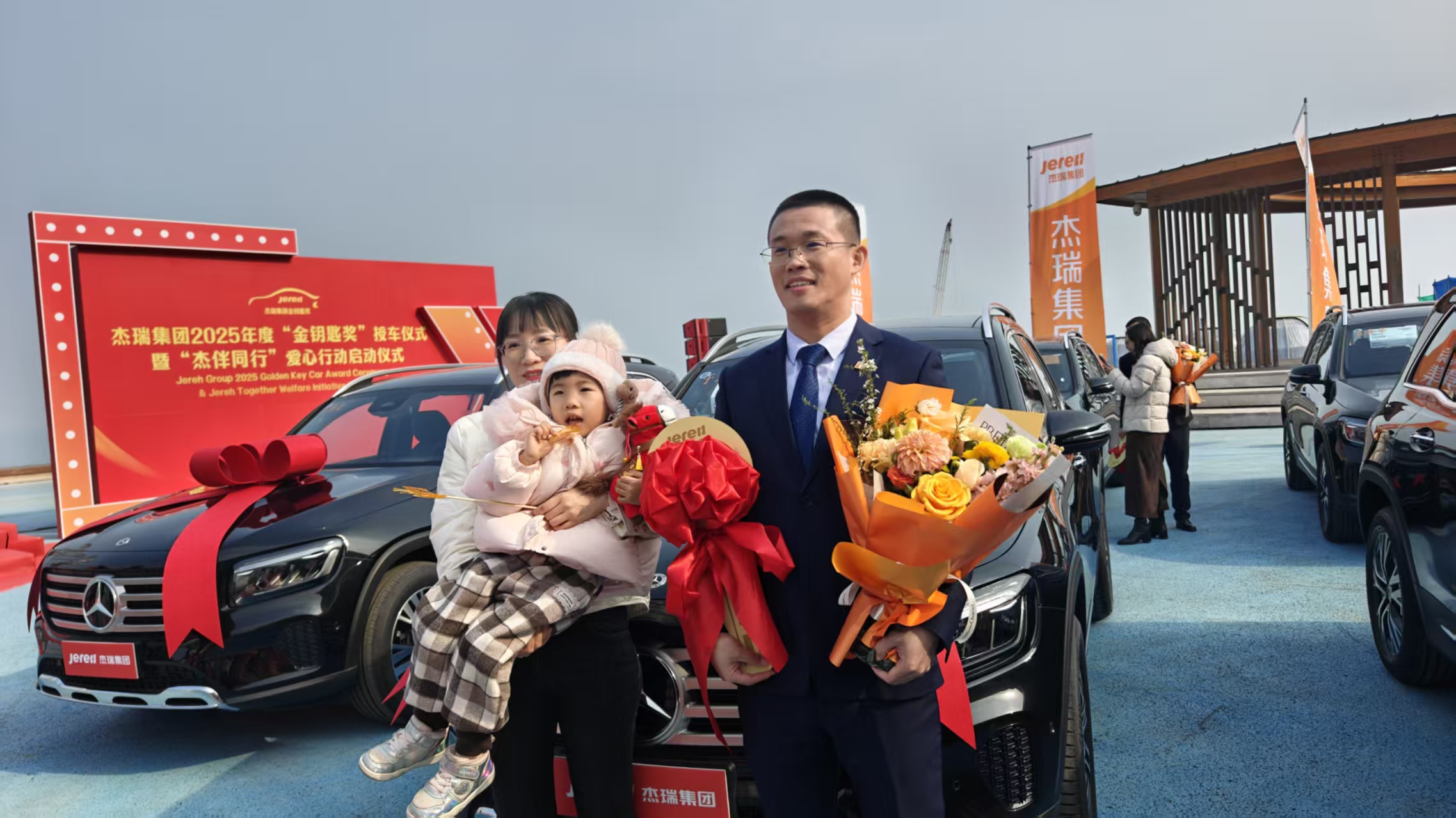 杰瑞“金钥匙奖”自2008年设立,18年里共有601名优秀员工荣获此项激励,奖车总价值超1.05亿元,其中2025年度颁发车辆40辆,价值超1000万元。