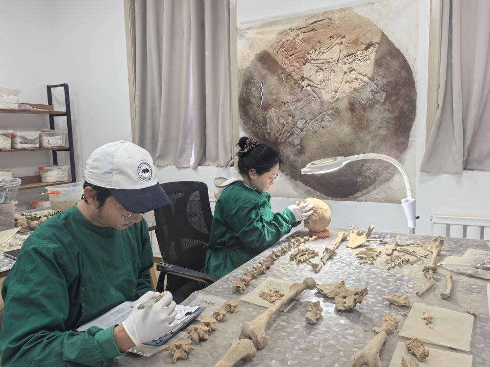 专家对出土人骨进行整理研究。(中国社科院供图)