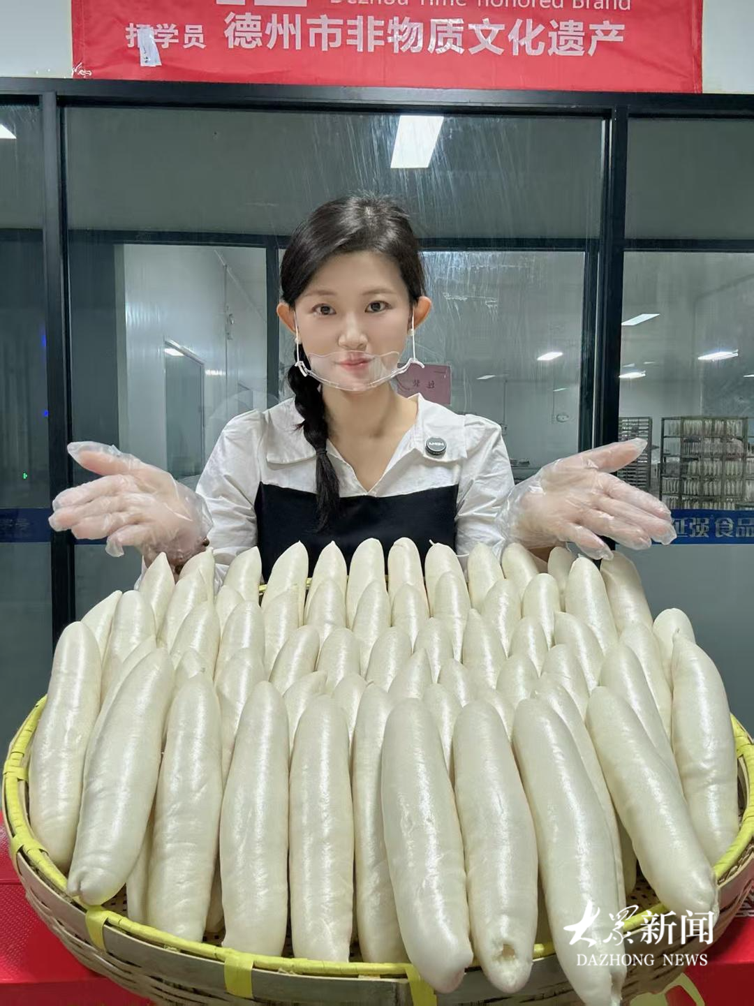“签子馒头是我们平原县恩城镇的特产,有500多年历史,制作技艺传到陈延强这一代,已经是第五代了。”运河大集上,周远远给来往的食客介绍说,“签子馒头采用老面兑碱自然发酵工艺,纯手工制作,制作时用一根根签子串起后上锅蒸制,成品馒头气孔呈细腻的蜂窝状,吃起来满口麦香味,越嚼越甜,越嚼越香。”