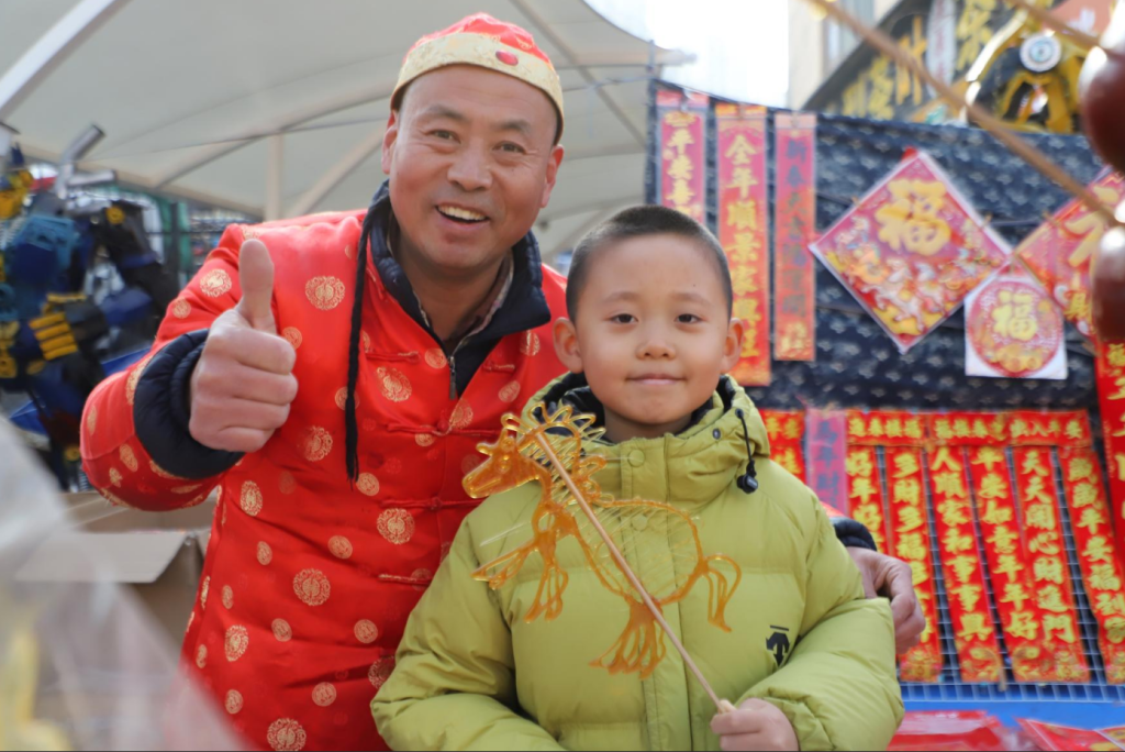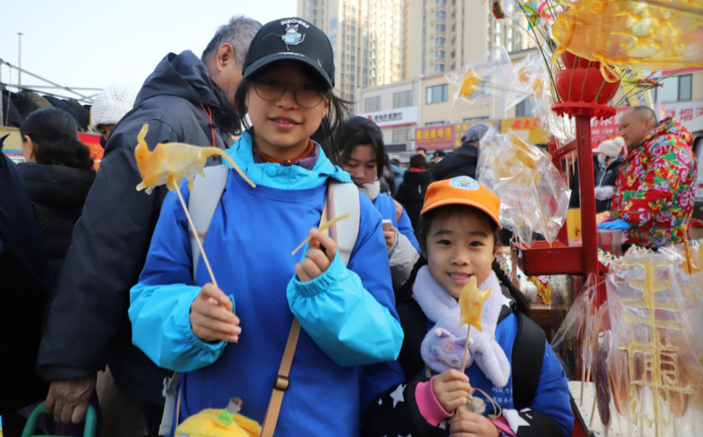 “每次摆大集,都有家长专门带孩子来欣赏、体验,我会手把手教他们画糖画、吹糖人。”张杨卫说,让孩子亲手触摸老手艺、感受传统文化魅力,是传承的第一步。他心中还有一个心愿:希望能有一处固定场地,为更多年轻人提供学习平台,让吹糖人这门老手艺后继有人,在青岛继续传承发展。在他的耐心指导下,陆续有小朋友完成了属于自己的糖艺作品,家长们纷纷拍下合影,将这份非遗年味定格珍藏。