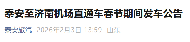 注意!泰安至济南机场直通车春节期间班次调整!