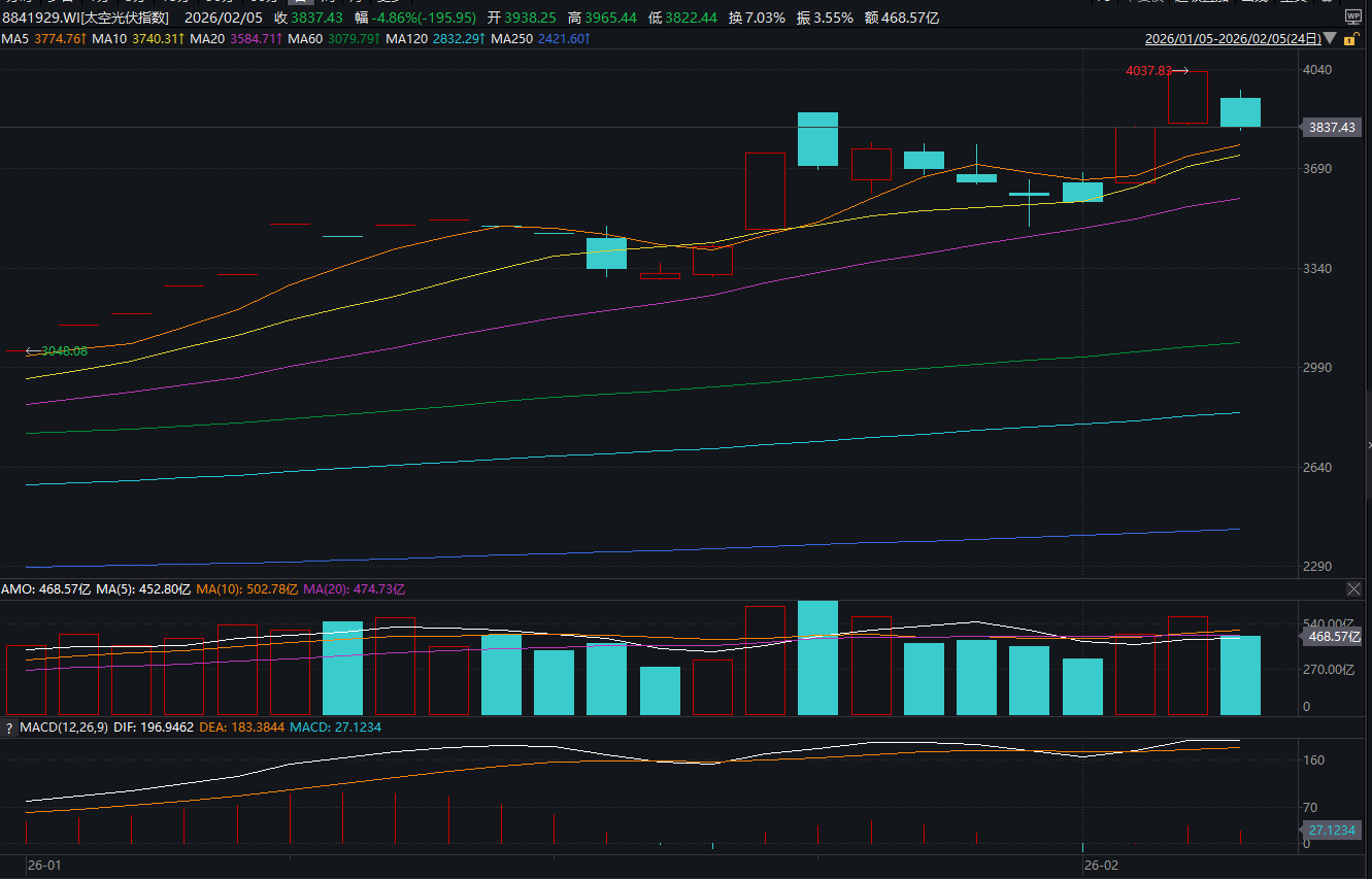 近两日,马斯克团队相关调研消息一出,太空光伏概念股行情迎来暴涨行情,多只概念股密集回应。今日,太空光伏概念股转瞬遇冷。截至2月5日收盘,Wind太空光伏指数较昨日下跌4.86%。