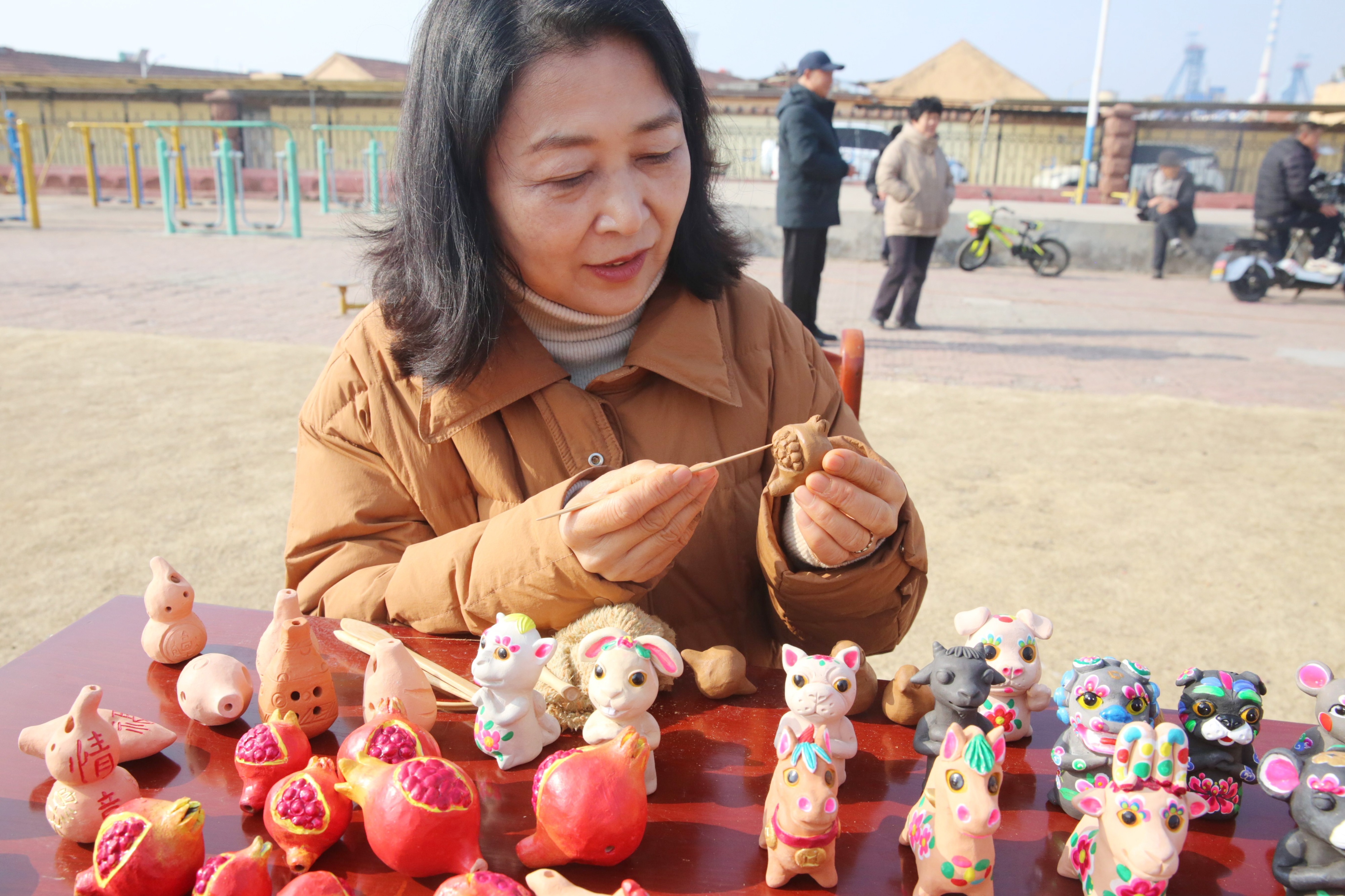 “非遗文创街”上,非遗传承人现场展示桃木雕刻、泥哨制作等技艺,并特别推出印有柴里煤矿元素的文创产品,让传统工艺焕发“矿山潮味”,成为抢手的纪念品。