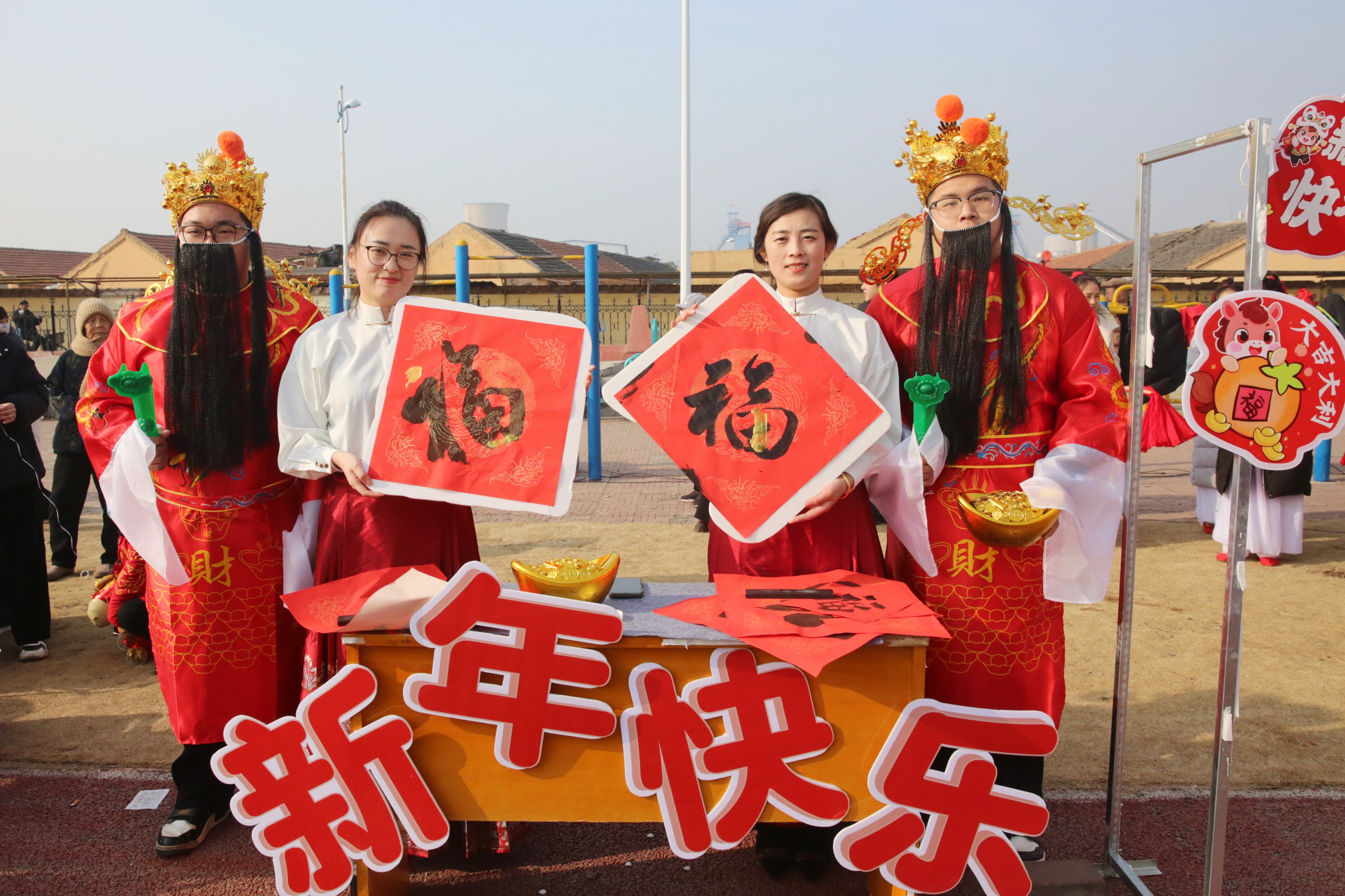 上午九点,随着欢快的锣鼓声,由高跷、秧歌和民俗卡通人物组成的巡游队伍从广场中心出发。身着彩衣的“财神”“福娃”穿行在人群之中,向职工家属派发“福”字和小礼品,引来阵阵欢笑与追逐。