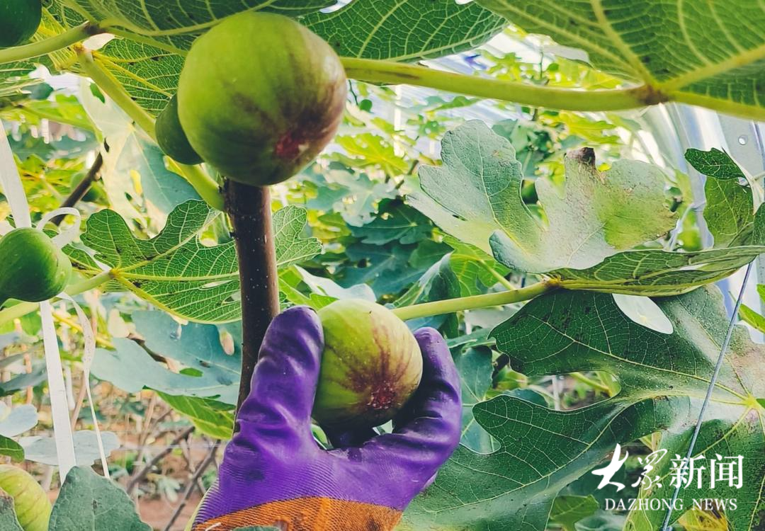 金庄村村民在大棚里采摘无花果。