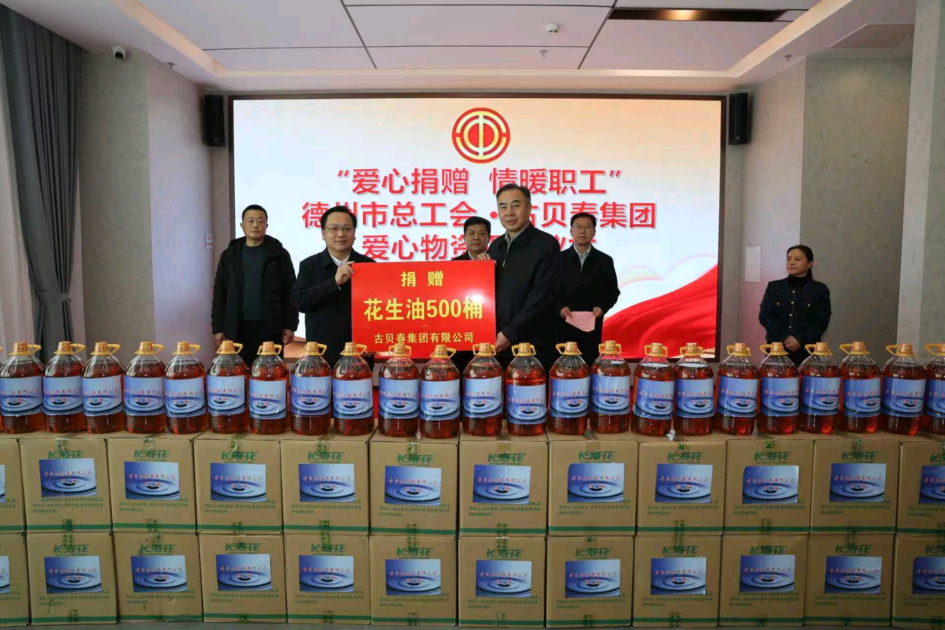 2月5日下午,“爱心奉献 情暖职工”德州市总工会·古贝春集团爱心物资捐赠仪式在德州市职工服务中心举行。 仪式上,古贝春集团公司党委副书记、总经理张洪昌代表古贝春集团向一线职工捐赠爱心物资,市总工会副主席、党组成员温福顺同志代表一线职工接受捐赠,并向古贝春集团颁发捐赠证书,对企业多年来的爱心善举致以诚挚感谢。值得一提的是,这已是古贝春集团连续21年情系德州一线职工,坚持慷慨解囊、传递爱心。