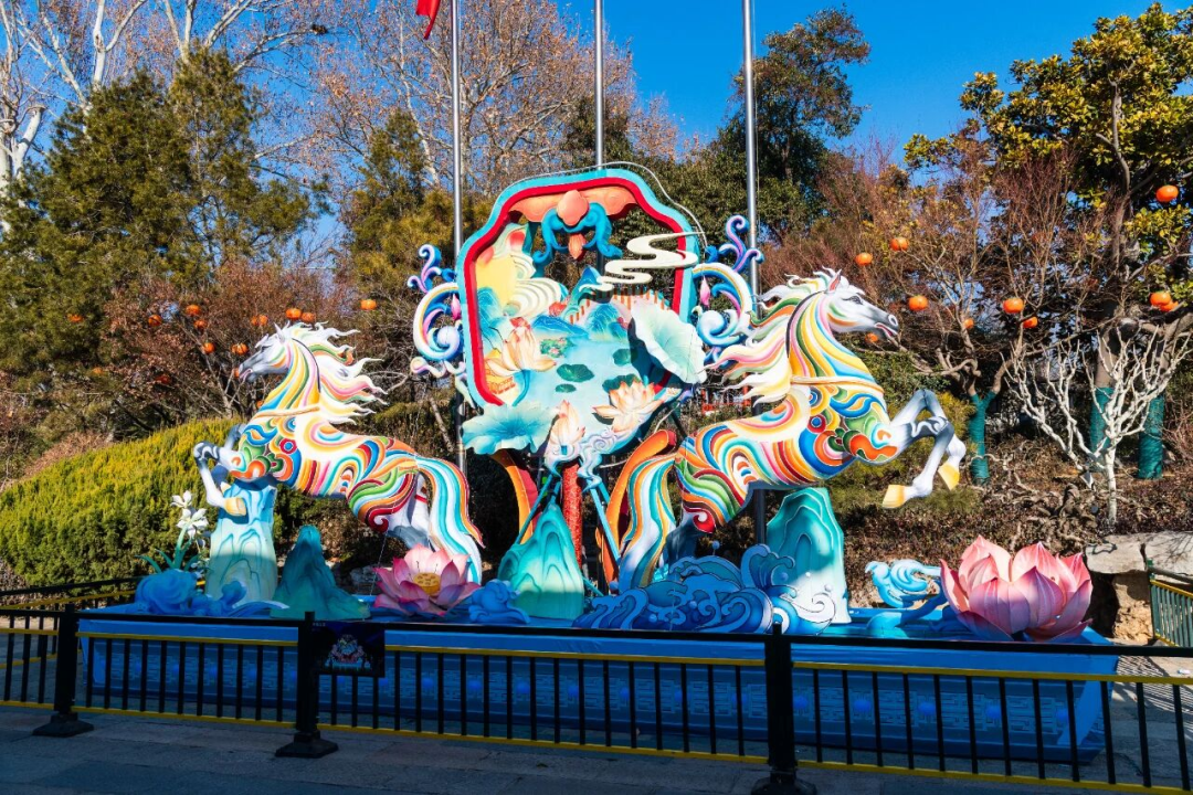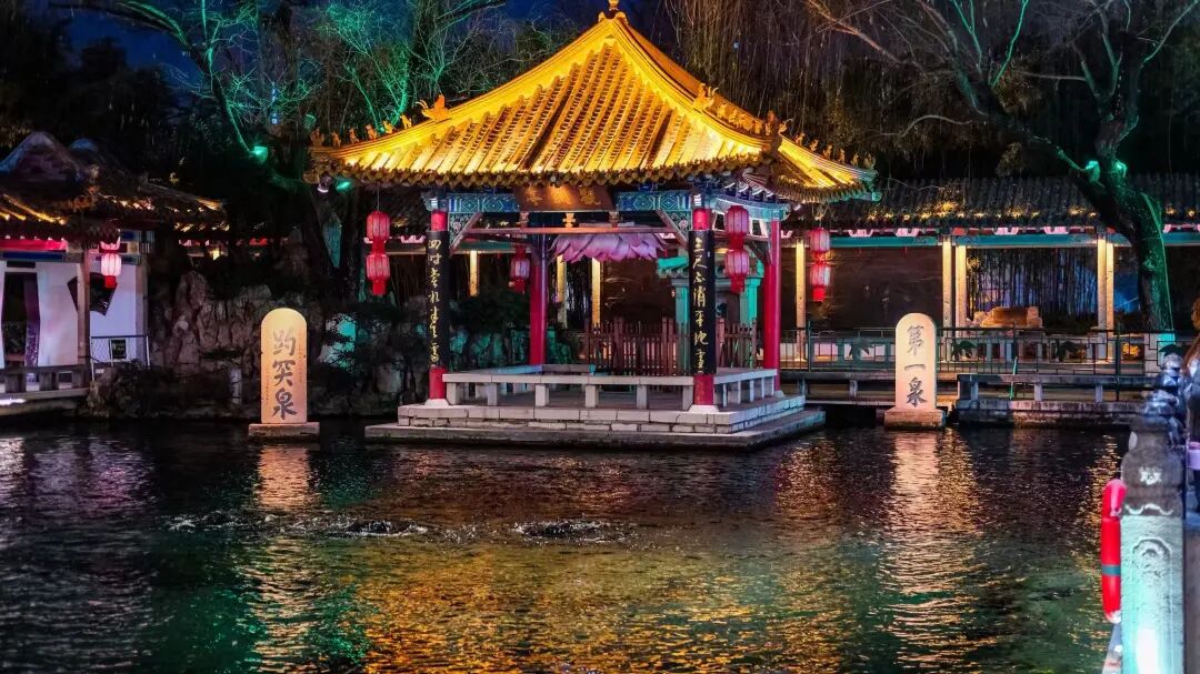趵突泉,这座被誉为“天下第一泉”的天然奇观,三股清泉日夜奔涌,滋养着泉城的烟火人间。新春期间,迎春花灯会在趵突泉畔点亮。非遗彩灯辉映泉池,游人赏灯猜谜,尽享佳节气氛。