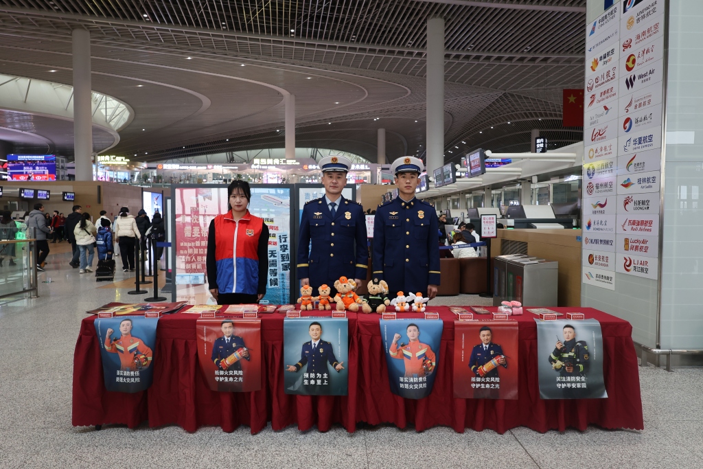 同时,机场航站楼的登机口公告栏处张贴了系列消防宣传海报,以鲜明色彩和简洁标语强化安全提示,让旅客在等候登机时潜移默化学习消防知识。不少旅客驻足咨询,宣传员耐心解答家庭防火、烟花爆竹安全等疑问,将实用技巧送到群众身边。