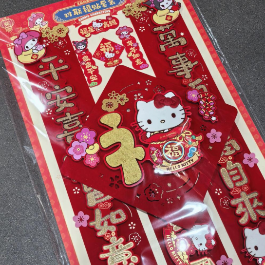 “我每年都会买春联和窗花,但基本是传统样式。今年看到三丽鸥的磁吸对联和小马宝莉的卡通门贴,一下子就被击中了!”在杭州一家永辉超市选购的“95后”顾客李小姐兴奋地分享,融合卡通形象与传统吉祥元素的新年装饰,萌趣又不失年味,不仅布置起来满心欢喜,还特别适合拍照分享。