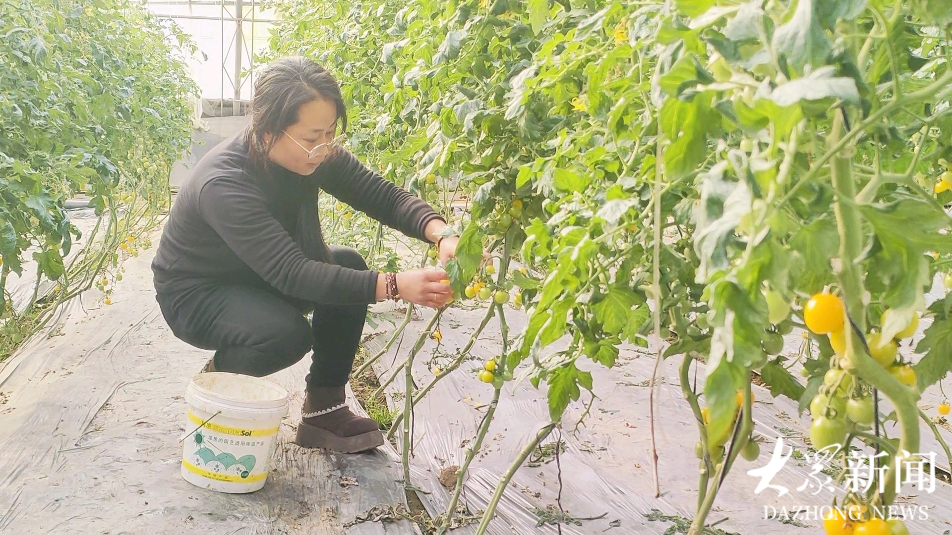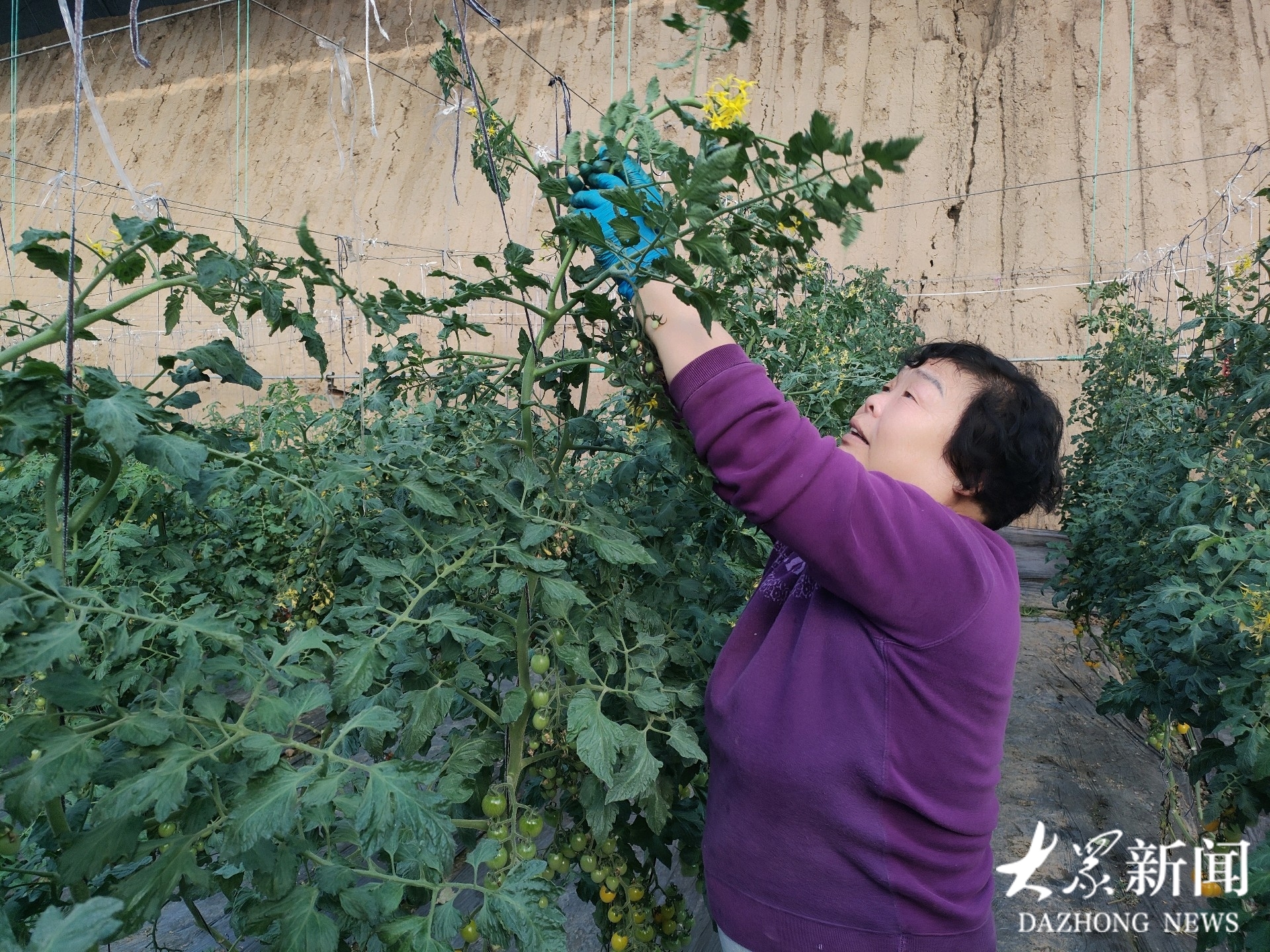 “早就听朋友说北羊村小番茄不仅有红色的,还有紫的、白的、黄的、绿的,今天特意来棚里采摘购买。”2月5日,室外寒风凛冽,临淄区皇城镇北羊村高标准富硒番茄种植基地的智能化大棚内却暖意融融,顾客王庆凤正蹲在藤蔓间挑选熟透的番茄,一串串灯笼似的小番茄挂满枝头,果香四溢。