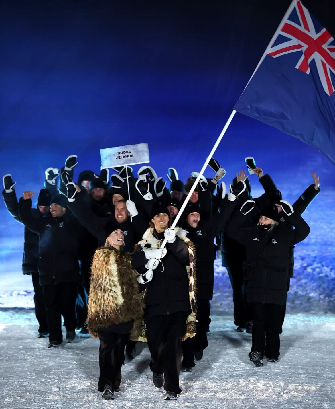 来自新西兰的运动员将从他们的开幕式夹克中找到灵感。他们全黑的套装中,被加入了一个二维码,扫码上网,将把他们与新西兰同胞和运动粉丝相连接,感受到来自家乡的支持。据了解这是新西兰国家队这是他们首次与本土品牌Kathmandu合作,使用70%再生尼龙等环保材质。