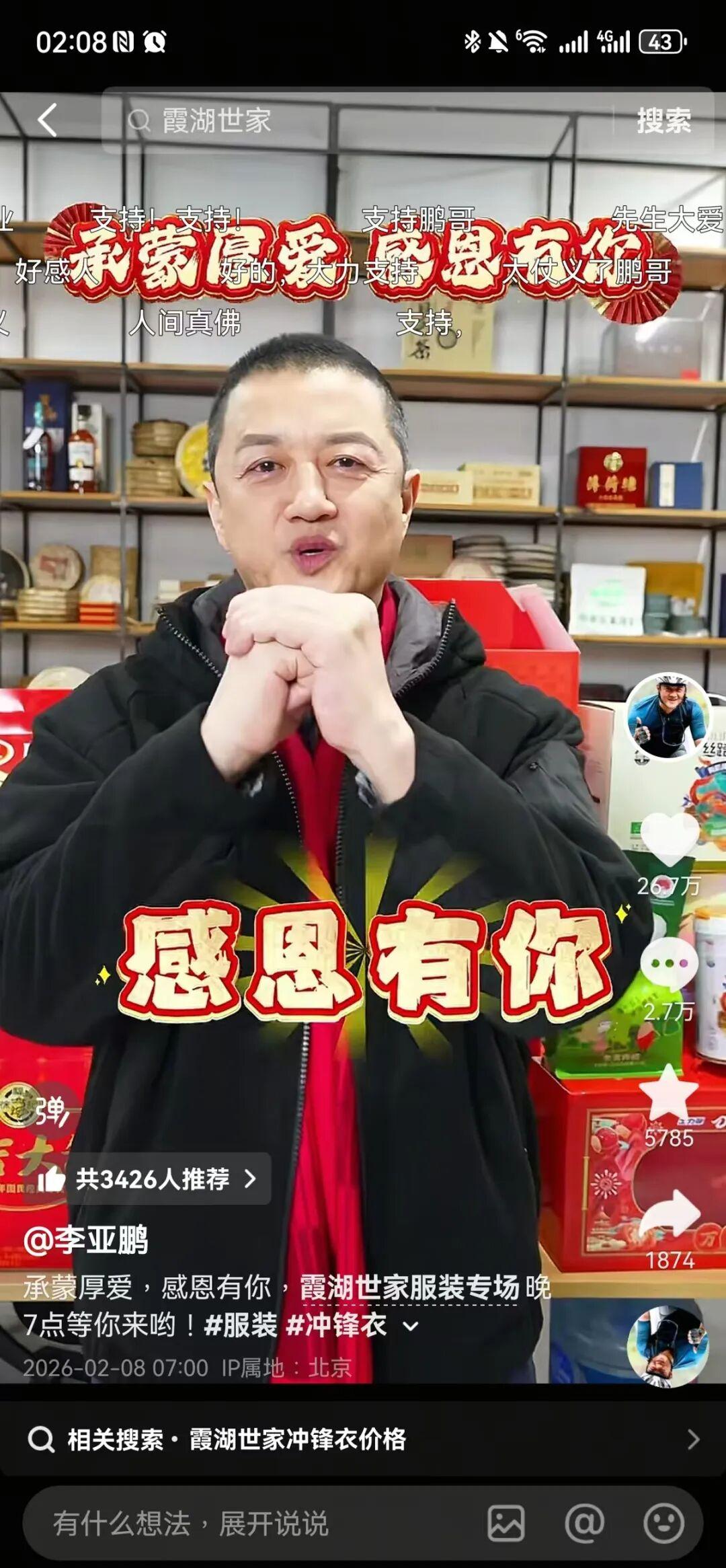 直播最后,李亚鹏给直播间网友“掏心窝子”,表示感谢。
