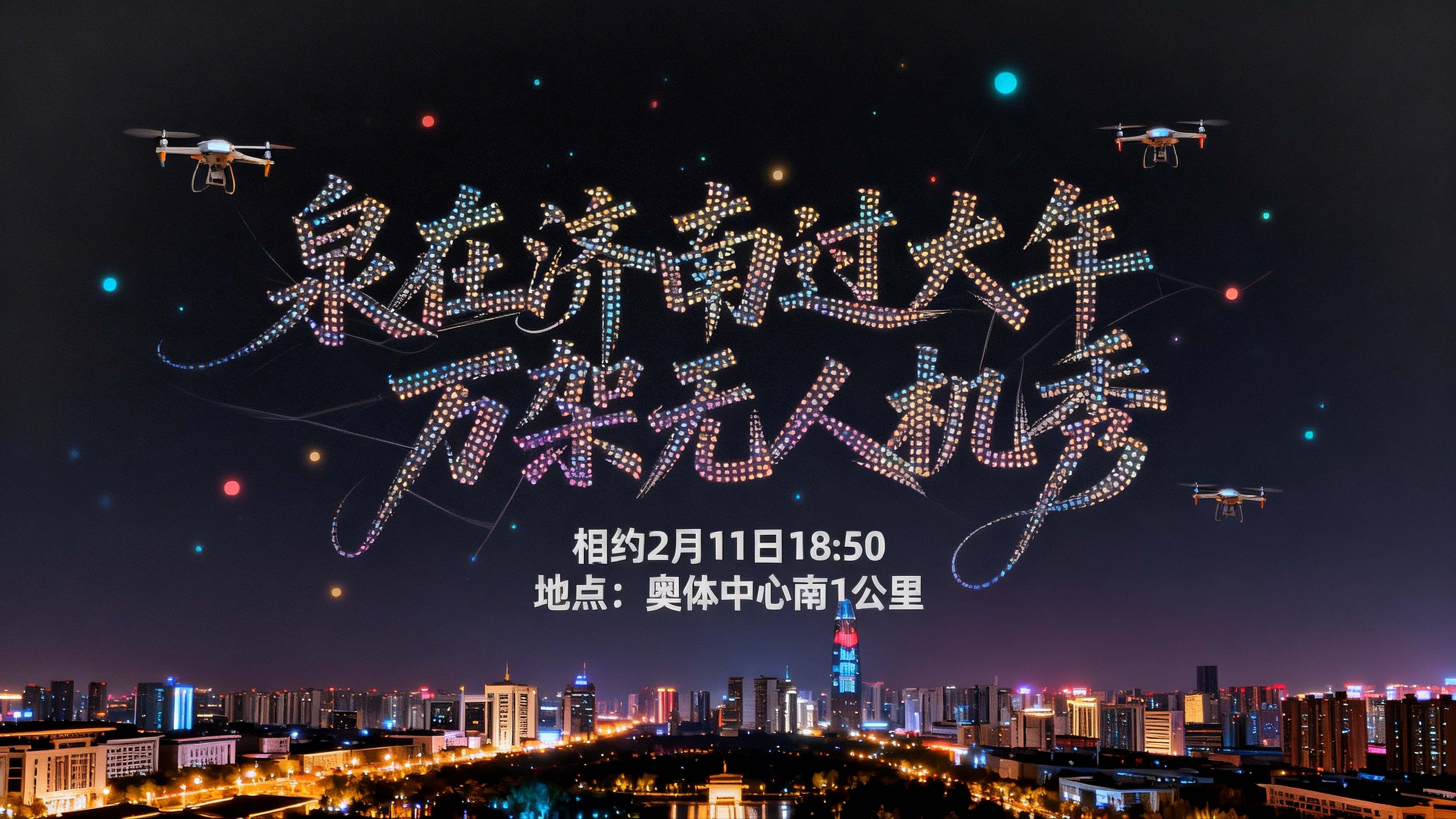 据济南低空经济发展集团相关负责人介绍,此次表演将出动1万架无人机,是济南史上规模最大的无人机表演。届时,无人机群将从旅游路以南、龙鼎大道以西升空,在20分钟的光影展演中,无人机编队将次第勾勒出趵突泉、超然楼等济南文旅地标,泉城锦鲤灵动穿梭,千年泉城的历史底蕴与数智济南的现代活力在夜空中交相辉映,每一帧都是视觉的饕餮盛宴。以天为幕、以光为笔,为全城市民和游客送上别样新春浪漫。