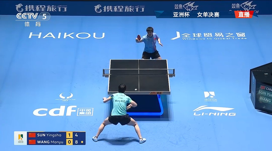 2月8日晚,第35届国际乒联-亚乒联盟亚洲杯女单决赛在海口进行,孙颖莎对阵王曼昱。