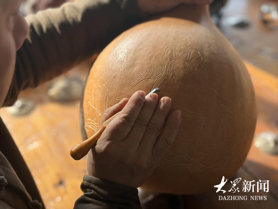 采访即将结束时,马友谊接了个电话,电话那头是马年的新订单,他去到仓库里,将整齐码放着的即将发往全国乃至世界各地的“福禄”产品拍给客户看。而后回到他的工作室,继续着未完成的“八仙过海”葫芦作品。这个由一颗葫芦生发出来的产业,就这样在传承与变革中,一步一个脚印,扎实地向前走着。新的一年,他计划进一步深化农文旅融合,在这条葫芦藤蔓上助力更多人,也将葫芦文化传递更久更远。