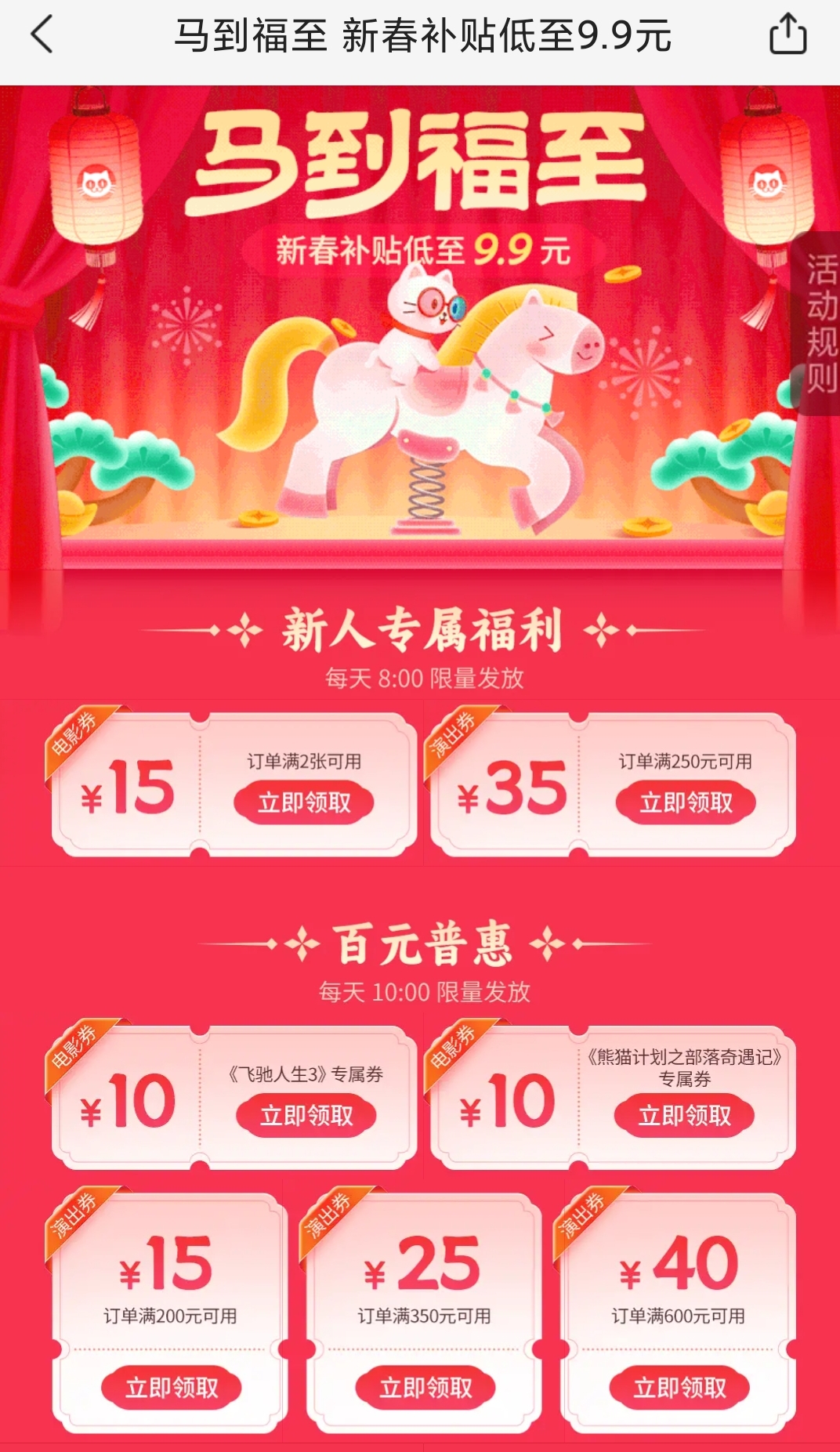 春节作为全年观影需求最密集的档期,票价历来是市场敏感神经。相较前几年均价持续站在50元关口,今年预售阶段涌出的19.9元场次,确实带来了久违的“价格震撼”。2月9日,在平台“购票立享优惠”的促销标语下,叠加云包场等活动,票价最低可至16.9元。这波操作迅速点燃市场。预售票房一路看涨,不少观望者因低价果断下单。社交媒体上,“春节档看电影不再是奢侈”话题不断发酵。