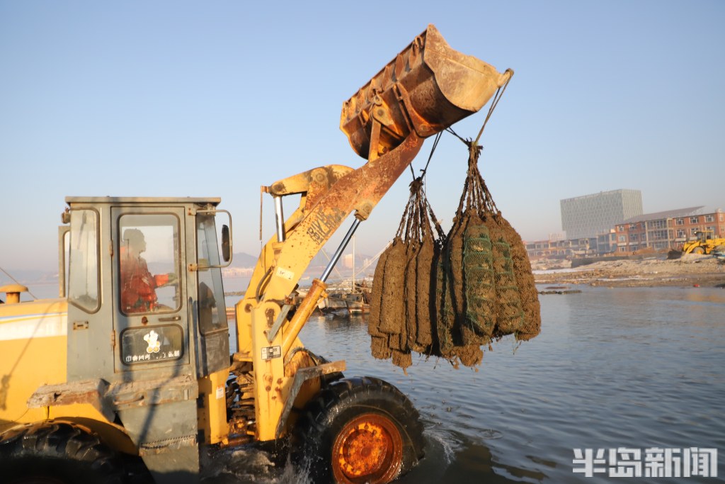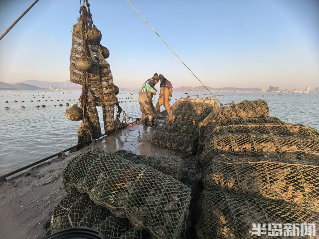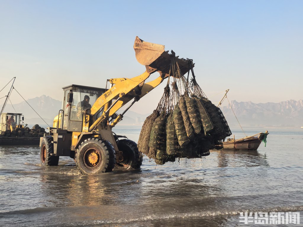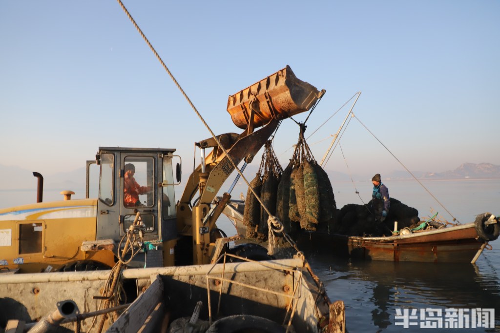 从晨光微亮到日头高升,从海上采收、机械化上岸,到岸边分拣、装车外运,盘龙庄的渔港里,每一个环节都井然有序、充满活力。没有喧嚣的吆喝,只有渔民们熟练的操作、邻里间默契的相助,以及海风里淡淡的海蛎子鲜香,这是独属于渔村的烟火气,也是新春前夕最动人的丰收图景。
