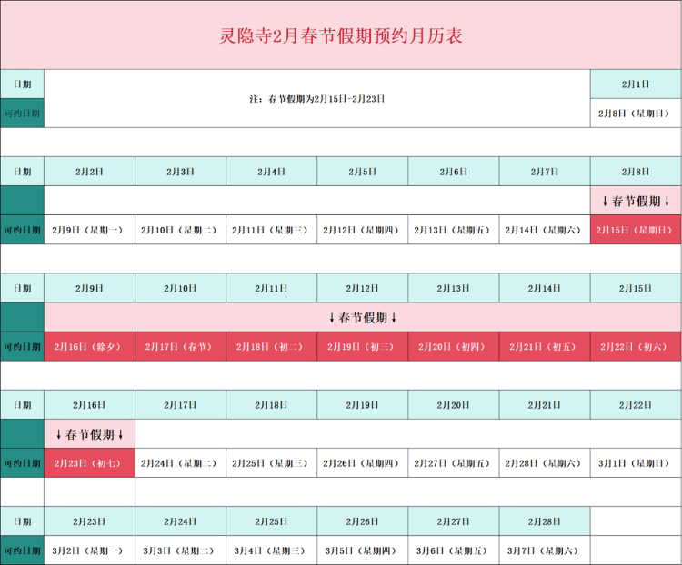 灵隐春节全面取消现场排队,提前1天下午5点前可退,爽约将禁约30天