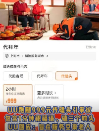 马年春节临近,UU跑腿推出“代拜年帮尽孝”服务在网络引发热议。