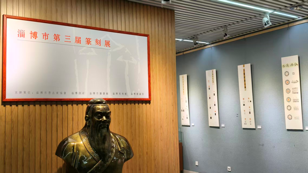 日前,淄博市第三届篆刻展在淄博市图书馆四楼尼山(稷下)书院启幕。