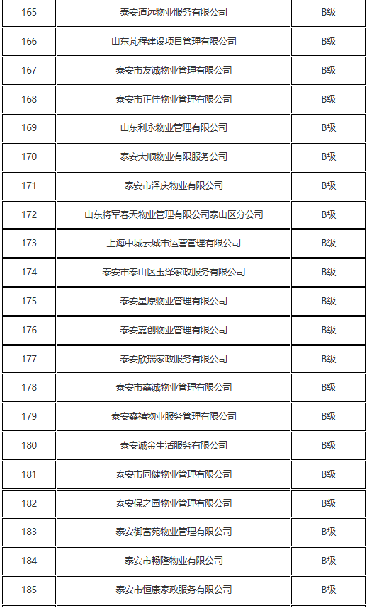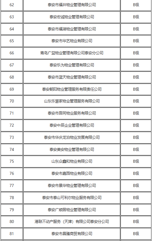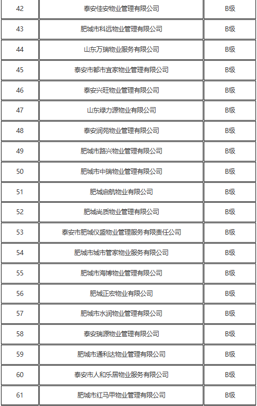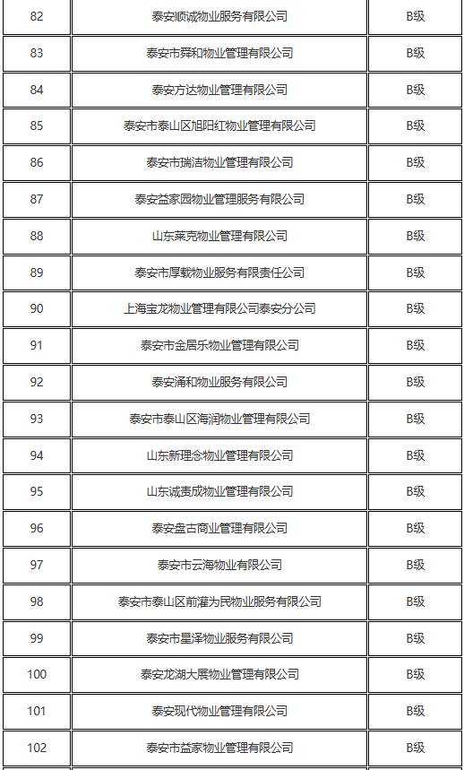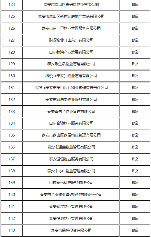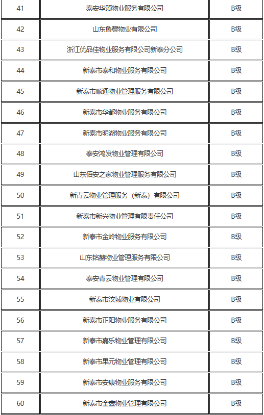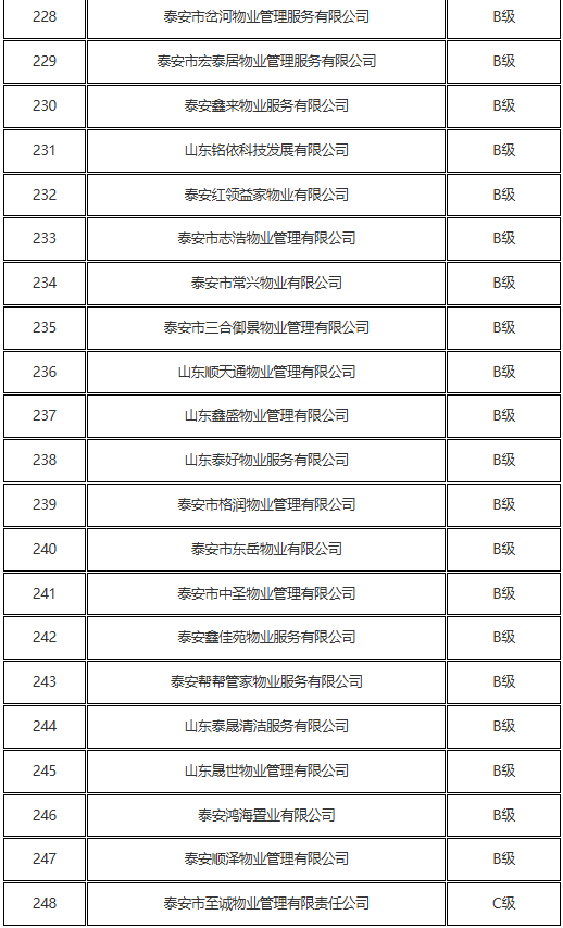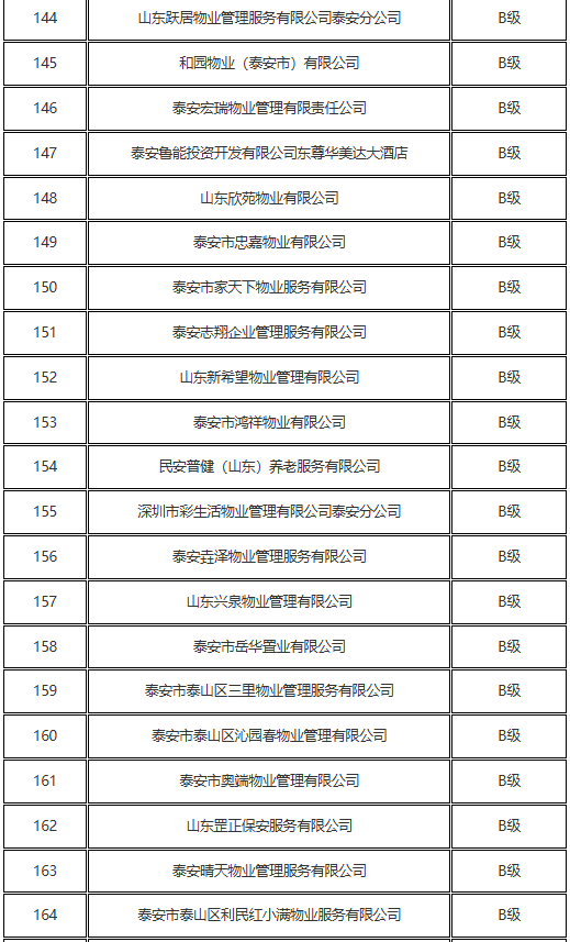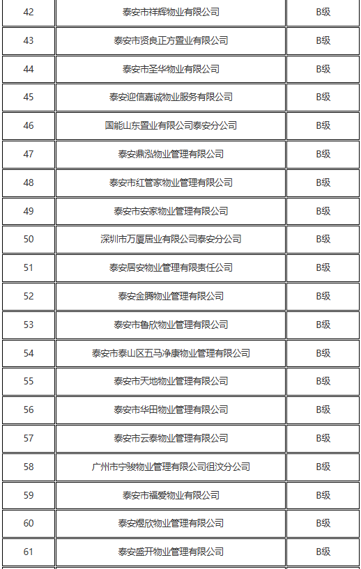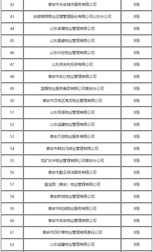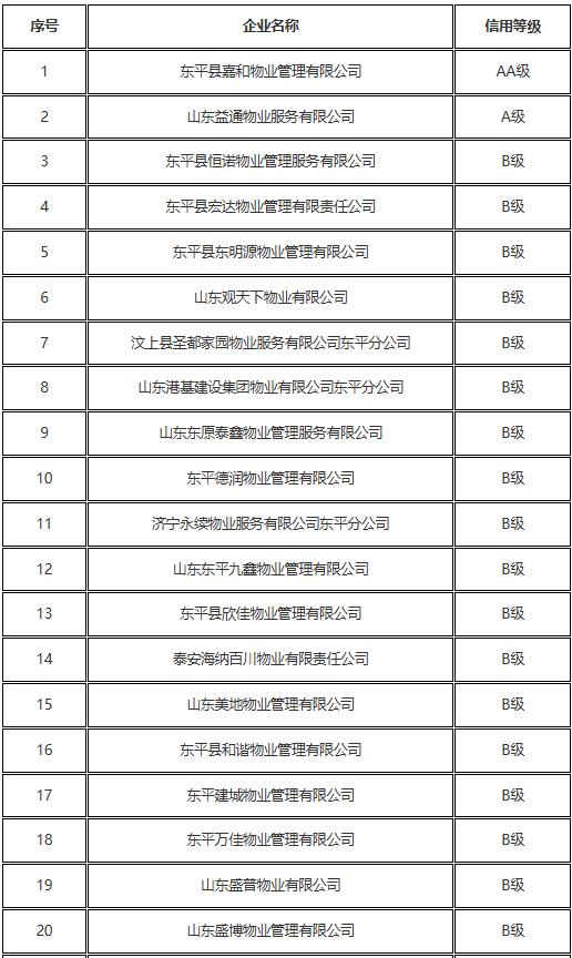 现将泰安市2025年度第四季度物业服务企业信用等级结果公布如下: