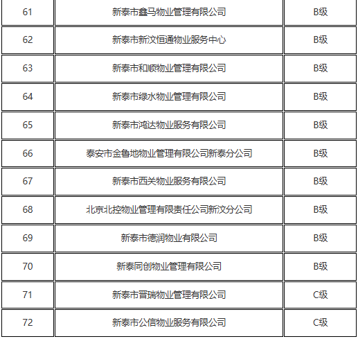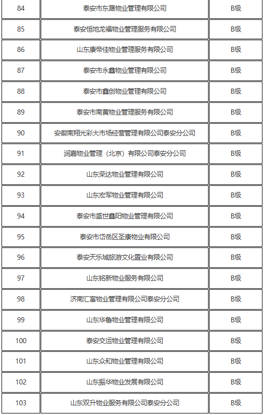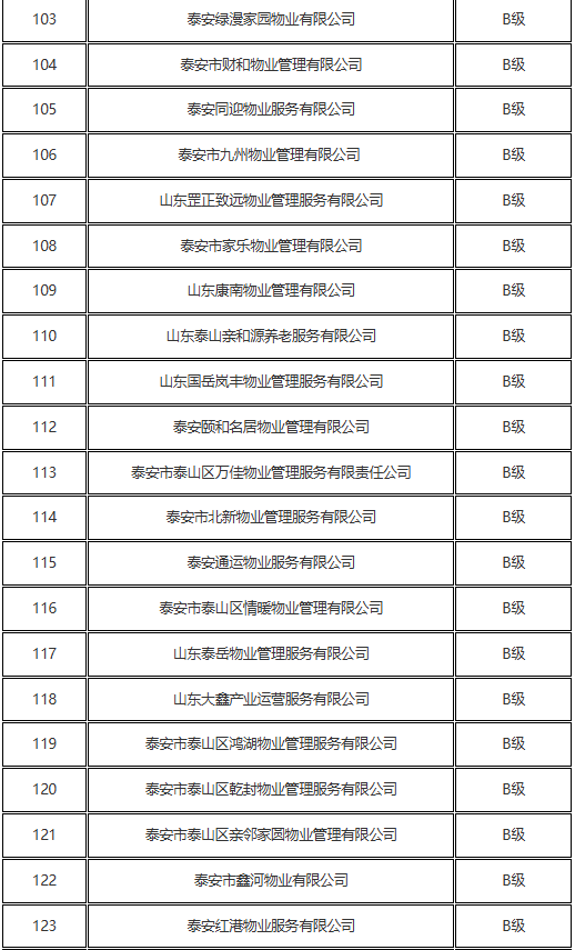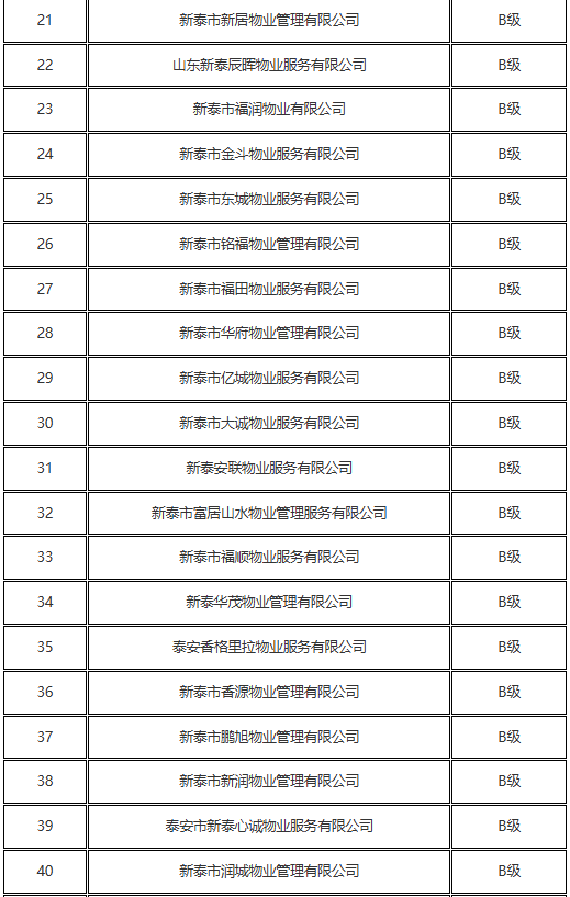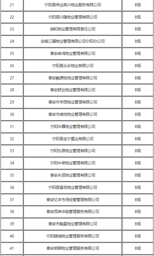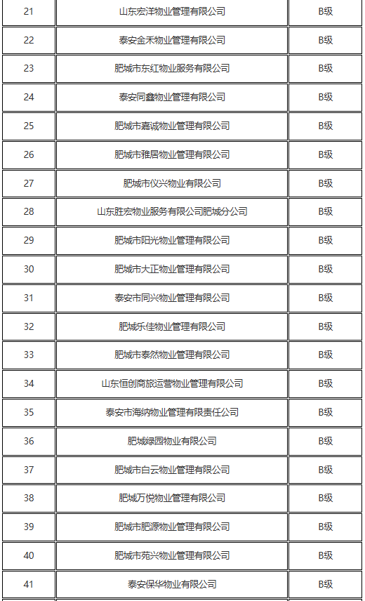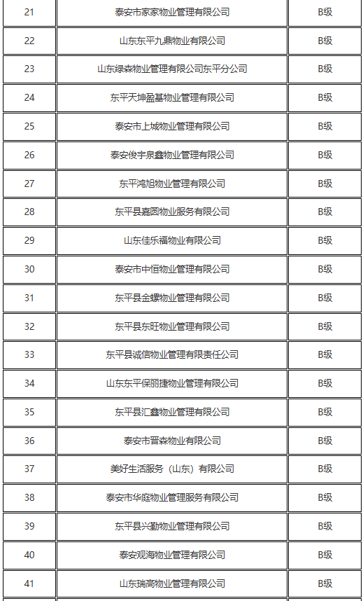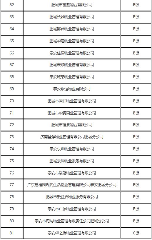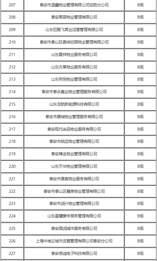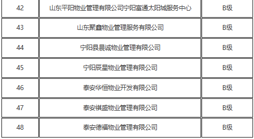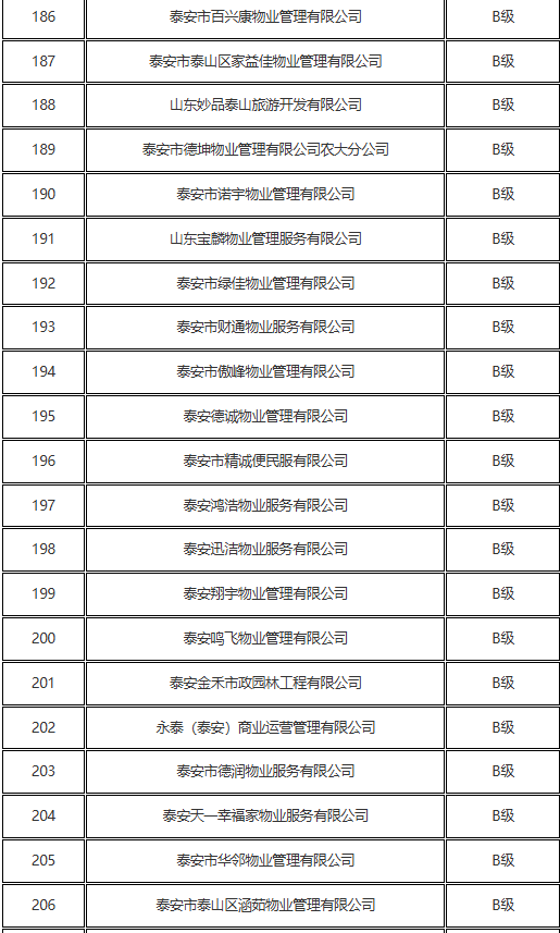 现将泰安市2025年度第四季度物业服务企业信用等级结果公布如下: