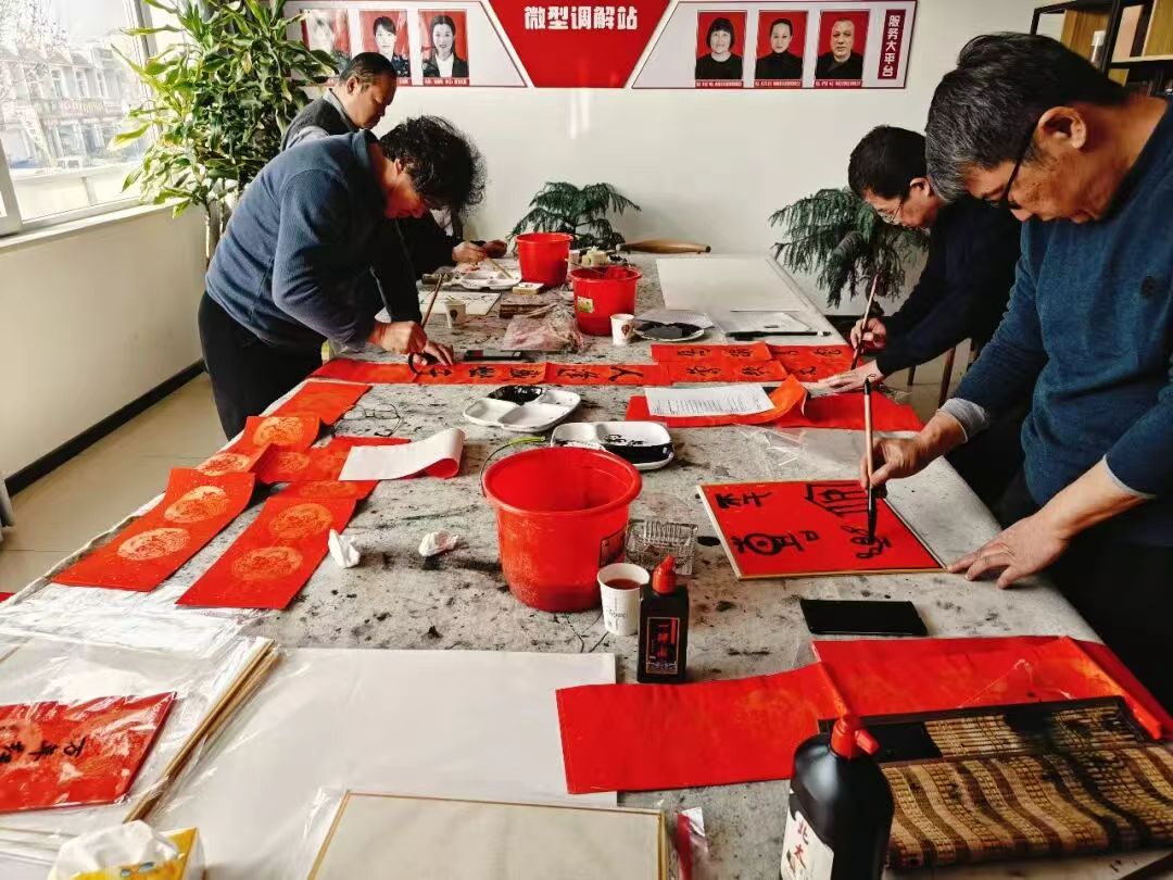 在东夏镇文化站,青州市美术家协会的成员们挥毫画笔创作山水、描摹花草,笔墨间藏尽春山黛色、繁花缀枝的盎然生机,一幅幅寓意吉祥的春联、一张张喜庆红火的福字,既是新春来临最诚挚的新年祝福,也是立春时节最温润的春日礼物,朱红底色衬着墨香雅韵,为东夏大地平添了浓浓的新春气息,让群众在笔墨书香中提前感受新年的喜悦与暖意……