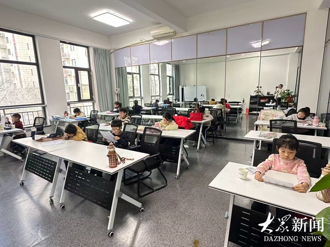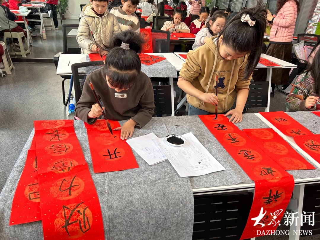 2月10日上午,奥林社区文化书院内墨香四溢。红纸铺开,毛笔提起,孩子们在书法老师的指导下,认真书写着对新年的美好祝愿。