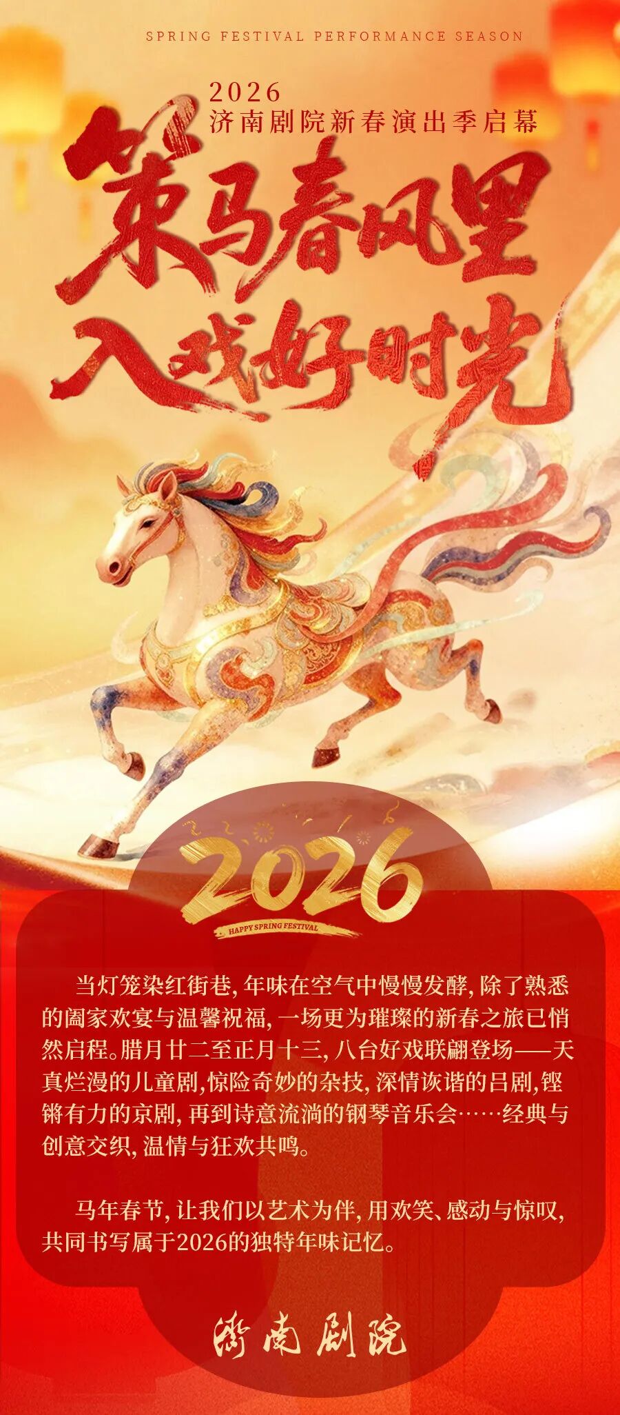 济南剧院“策马春风里,入戏好时光”2026济南新春演出季启幕