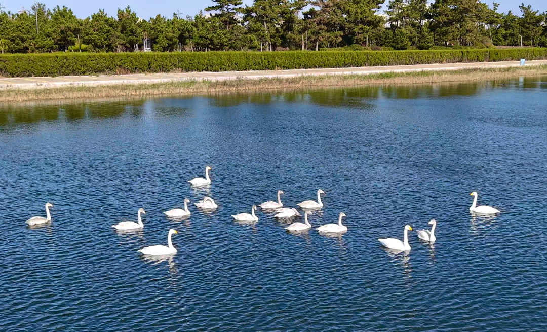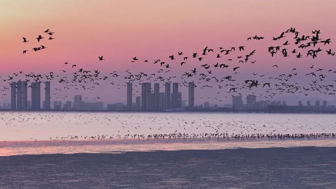 位于南海新区的威海五垒岛湾国家湿地公园,迎来了大批候鸟在此停歇栖息、安心越冬。