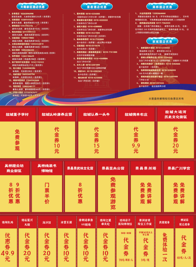 首个落地的具体举措,是一张“鲁冀边文旅联票”。 这张联票整合了四地数十个景区、商圈、餐饮等消费场景的优惠权益,持票者除享受折扣外,还可核销总额数百元的专属优惠券,全方位覆盖吃住行游购娱全产业链条。首期联票发行6000张,单张整合价值超过2000元,有效期至2026年8月31日。