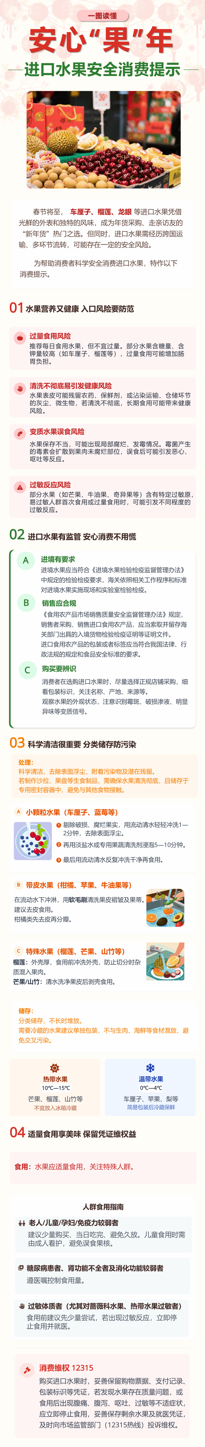为帮助消费者科学安全消费进口水果,市场监管总局发布消费提示。