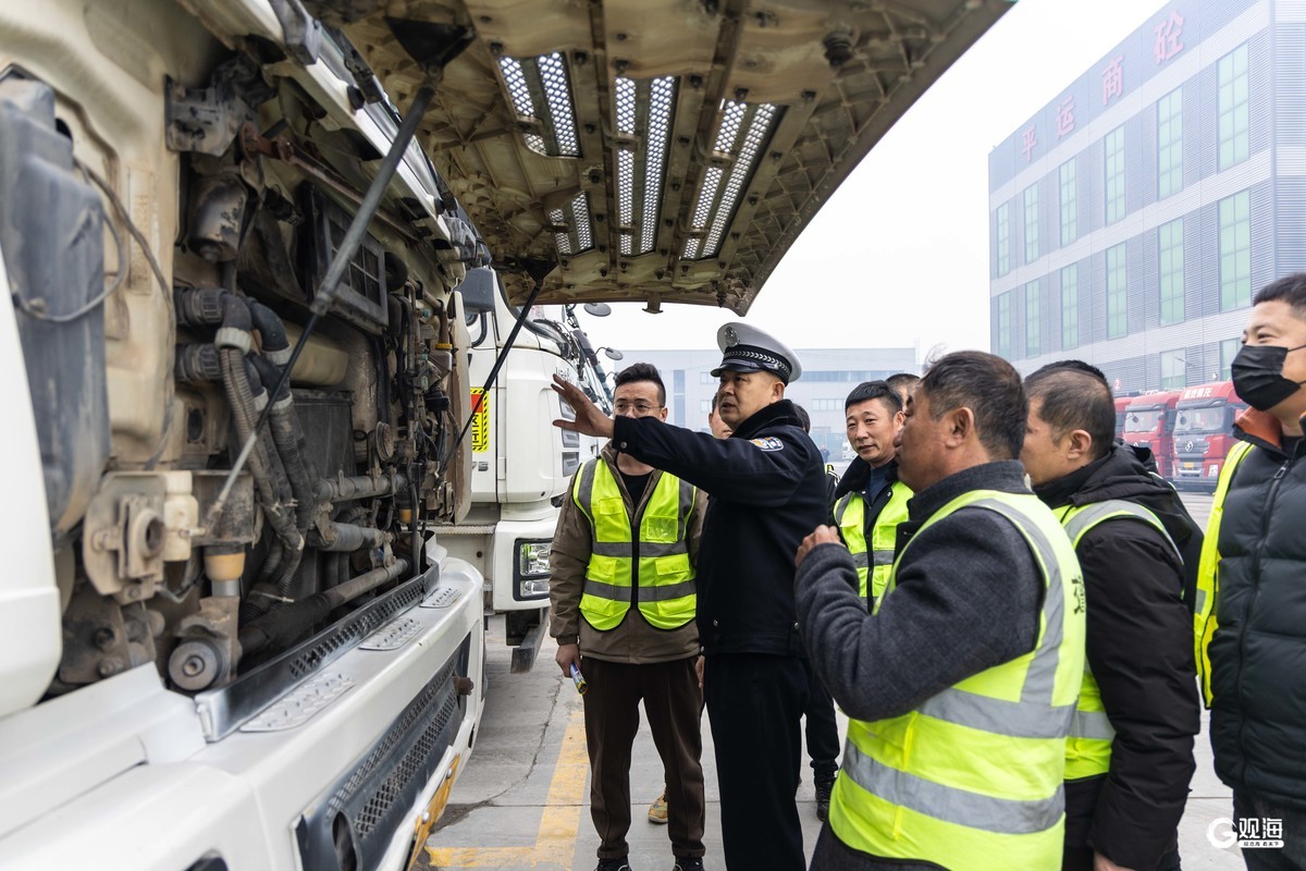 平度市公安局交管大队到平度商砼公司宣教并对运输车辆车况进行检查。