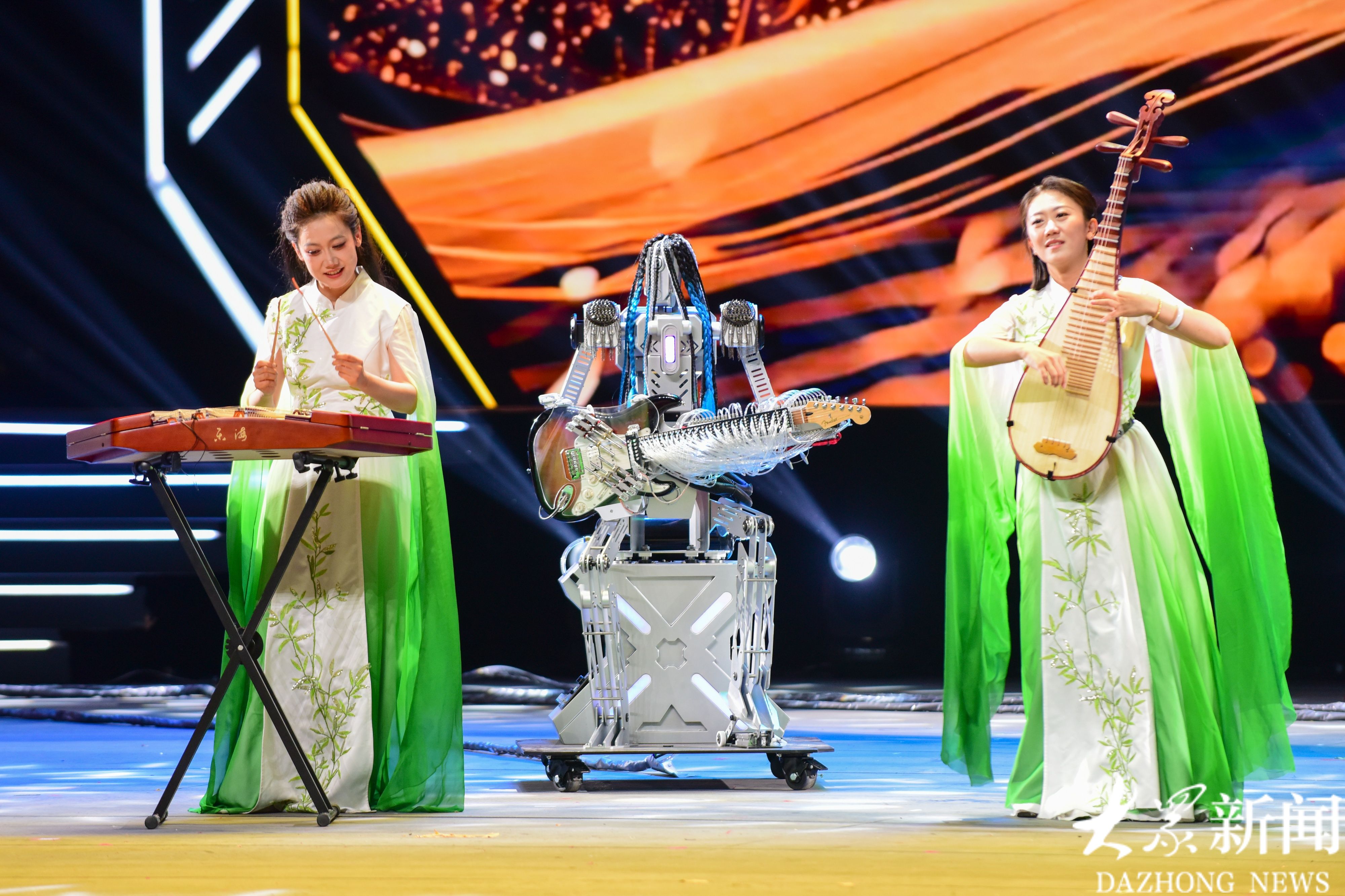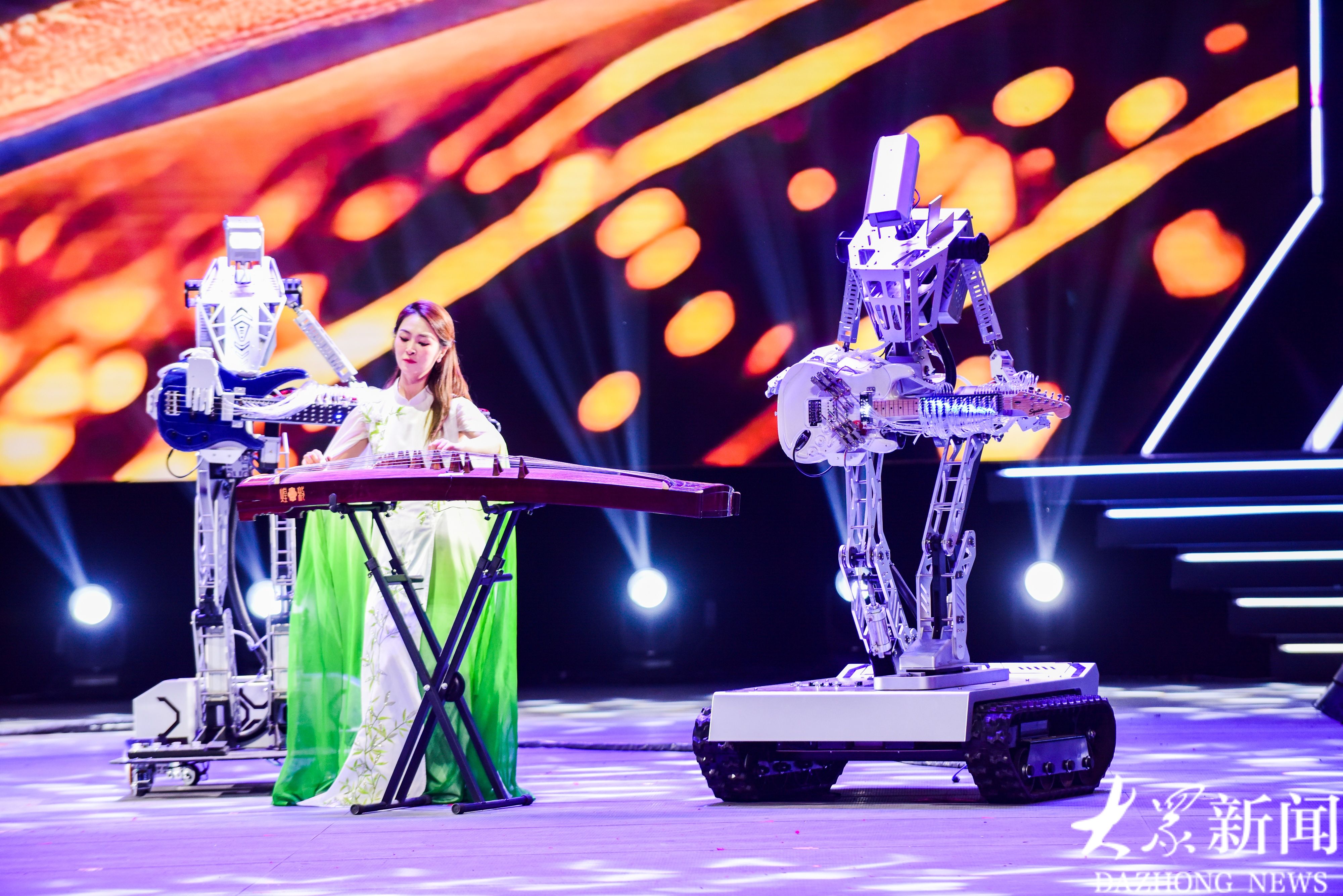 新民乐合奏《凤舞齐鲁·乐启新章》,磐石机器人乐队进行表演。吕光社 摄