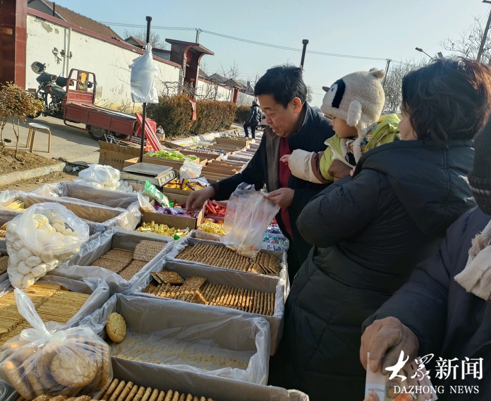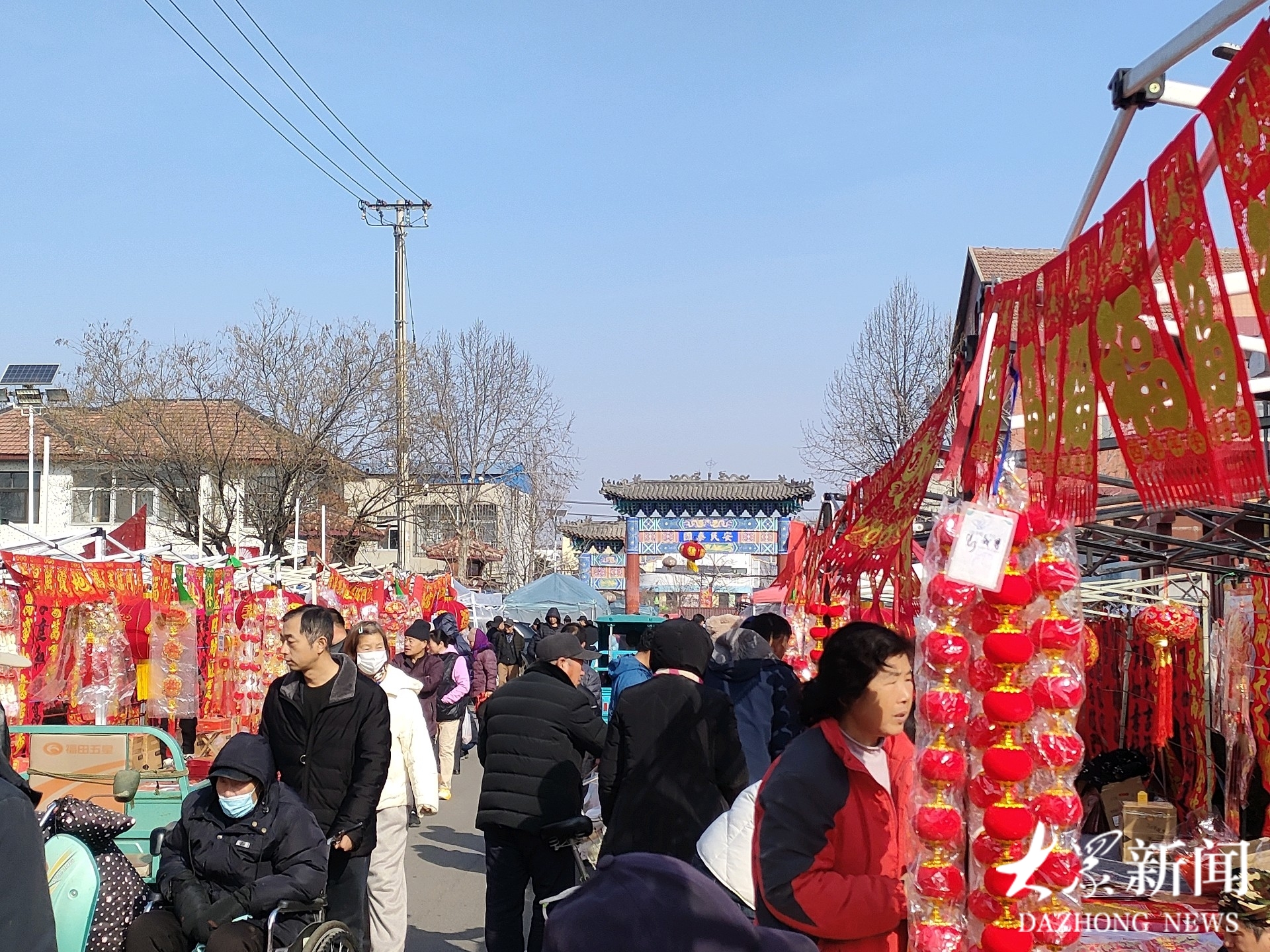 如今的大集告别了昔日占道经营的乱象,平整的地面上整齐划分出服装区、蔬菜区、杂货区等多个功能区块,标准化摊位沿着村里主干道两侧依次排开,摊位摆满各种年货,齐文化底蕴与市井烟火气交融升腾,村民们在摩肩接踵的人流中,感受地道的传统年味,定格新春的美好期盼。