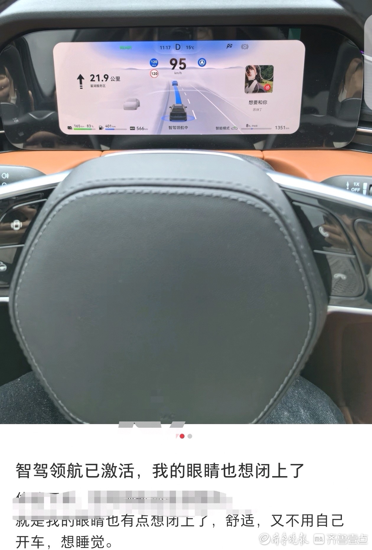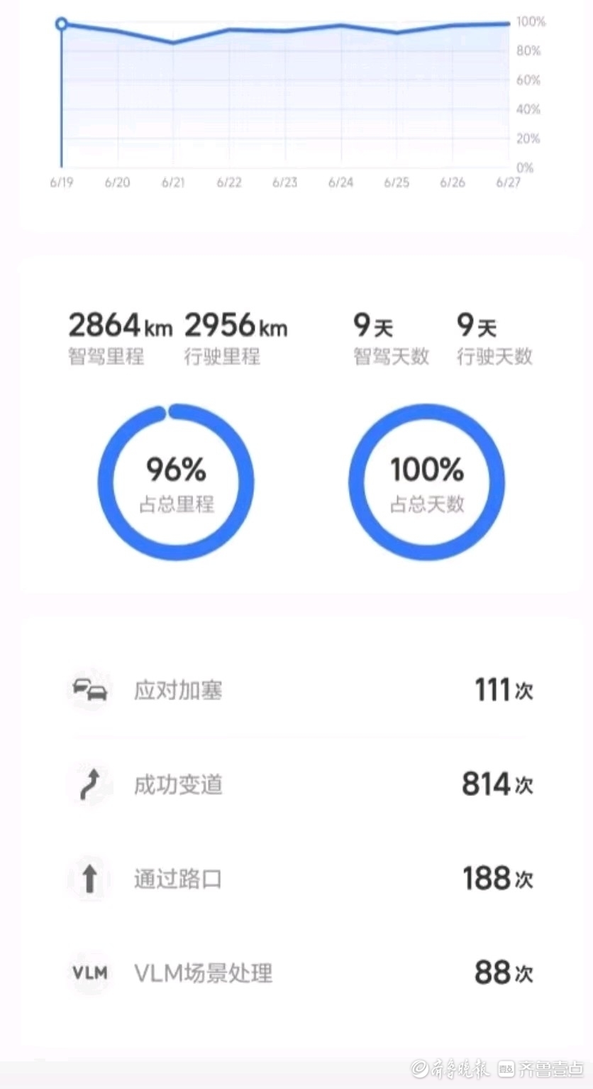 不少辅助驾驶用户也承认,自己曾长时间双手离开方向盘。某智能汽车车主齐先生就曾晒出自驾旅游的车辆行驶信息截图,自称“非必要不动方向盘”:9天自驾2956公里,其中智驾里程高达2864公里,占比达到96.9%。这背后,正是对“辅助”二字的轻视。