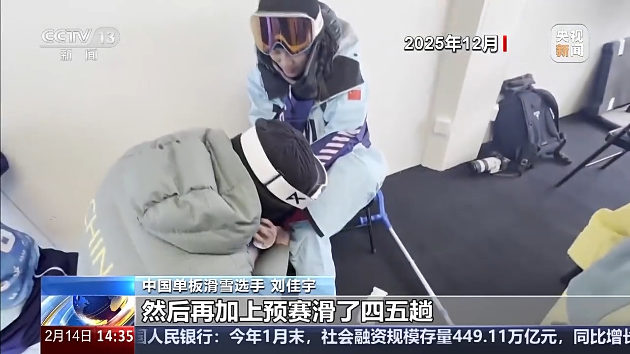 中国单板滑雪选手 刘佳宇:我是从北医三院打了封闭,从住院办了出院直接来了这边。第一天参加了训练,第一天训练滑了五趟,第二天滑了四五趟,再加上预赛滑了四五趟。决赛虽然摔了,但是又能怎样呢?这就是运动,这就是滑雪。谁又能不摔呢?