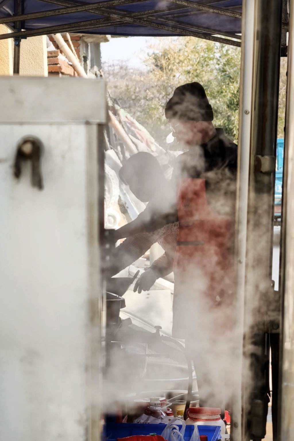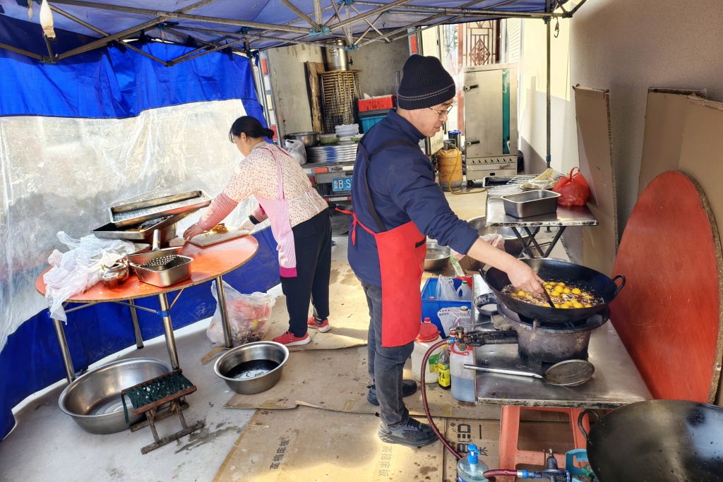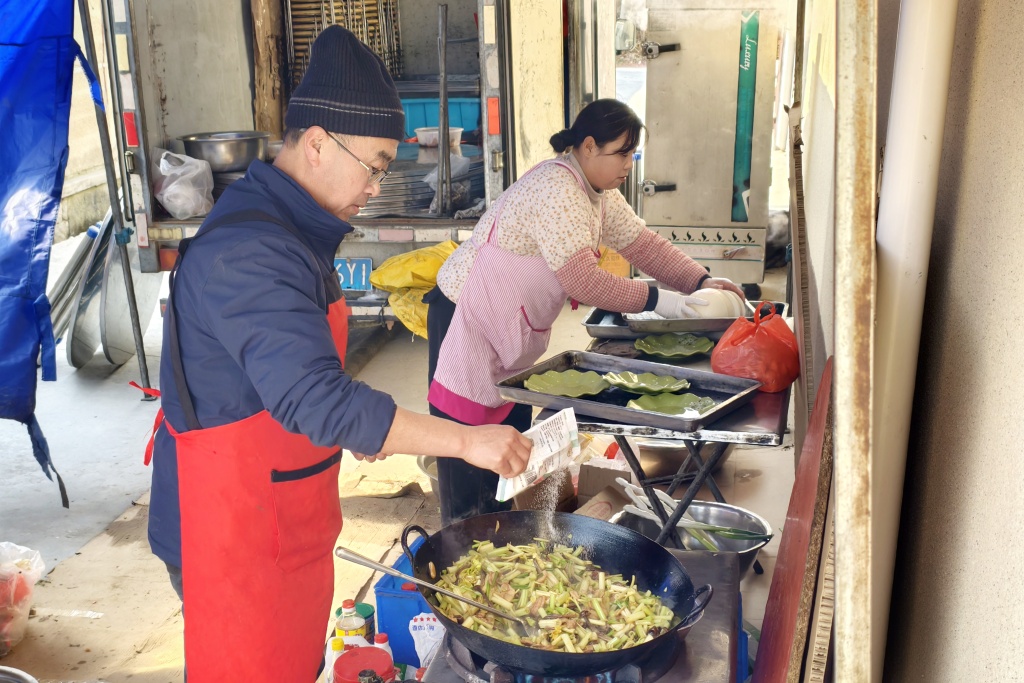 下午两点,宴席散场。两人开始收棚、洗碗、清点余料,阳光斜斜地洒在空掉的蒸屉上。腊月二十六,他们去邻村完成年前最后一单,之后封灶、备年货,准备在家安心过年。