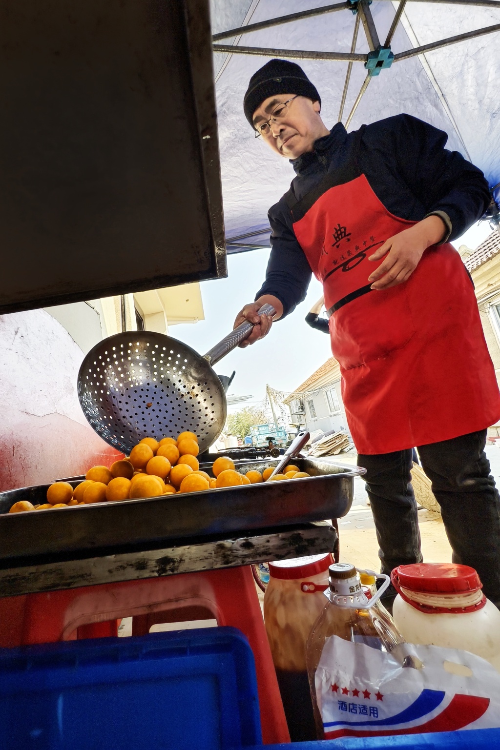 客人陆续入席,举杯的吆喝声、孩子的嬉笑声,与棚下持续的翻炒声混成一片。“今年一年干了得有200场,腊月二十六忙完就收工。”